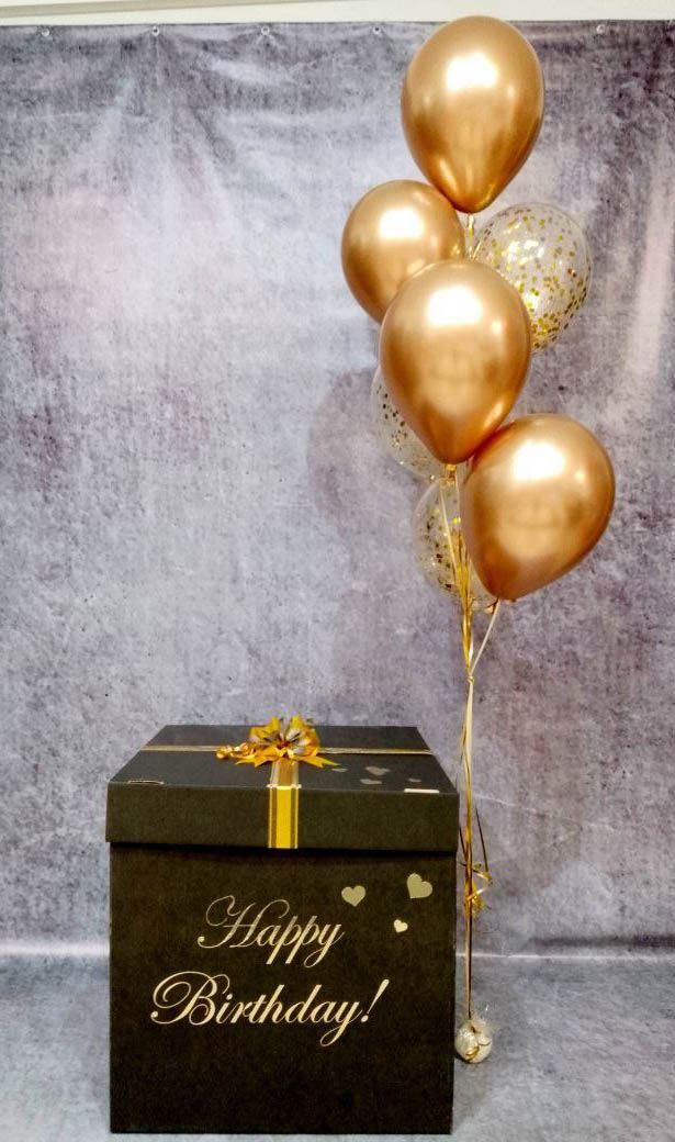 This stylish gift can really explode the feeling of joy and holiday. Why? The thing is that the courier brings the recipient just a big box. What's in it? The person opens the box and... balloons fly out! However they won't fly away to the sky as there is a special weight that still keeps them as it is shown at our photo.