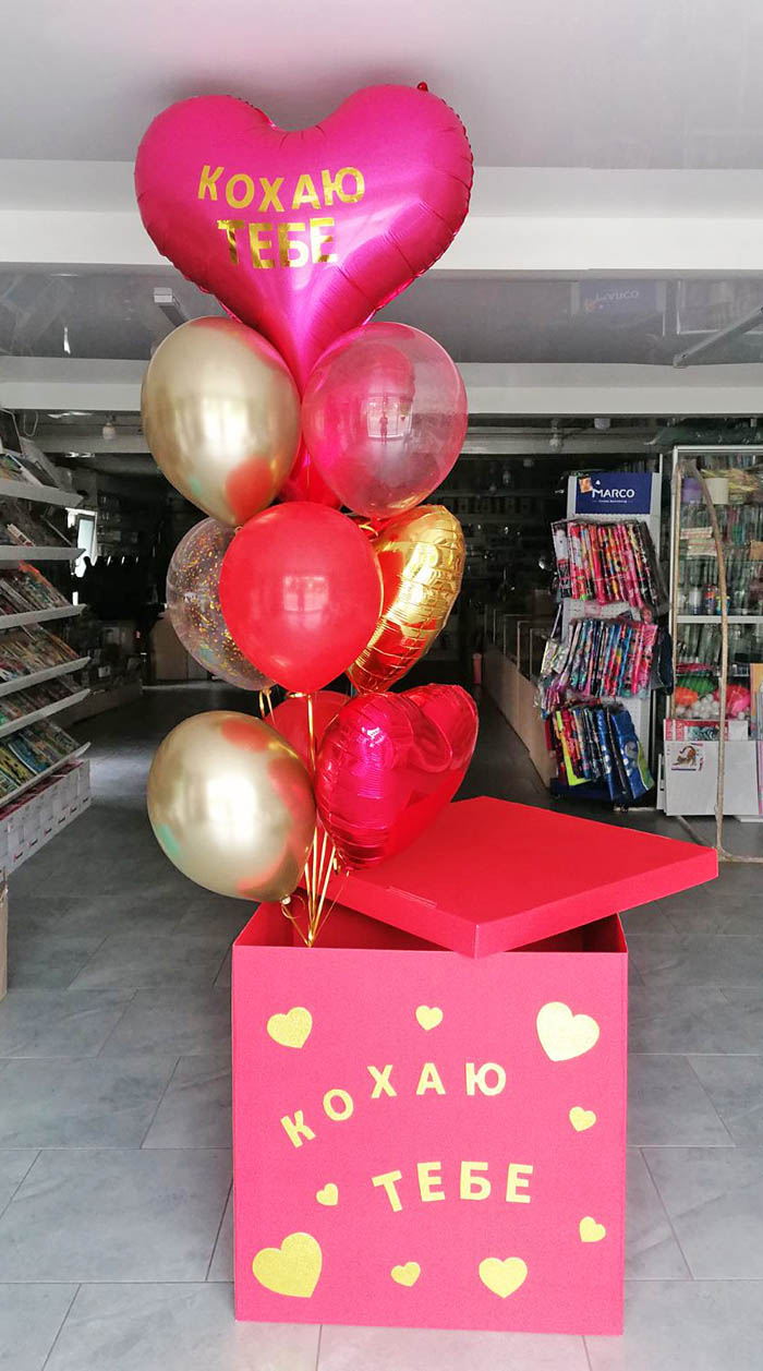 The box color can be a bit different when the order is placed as well and the color of balloons can be corrected by your specific instructions. Just let it us know at the "Comments" box when filling the order form.