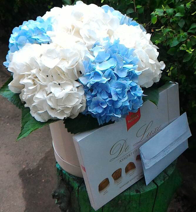 Please, choose the size og your gift by the number of Hydrangeas at the arrangement