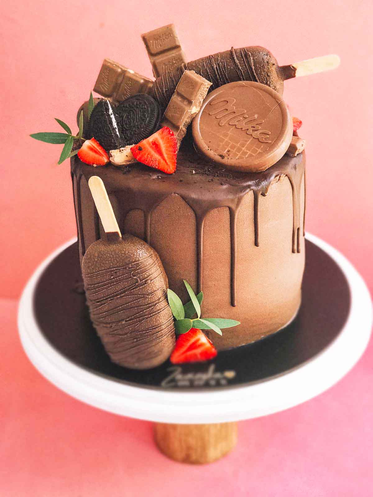 This particular cake is definitely for chocolates lovers: a chocolate thin base layer + chocolate mousse + chocolate decoration on the top
