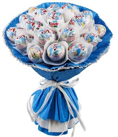Such a lovely and sweet bouquet is designed for a boy as well as a young lady who loves chocolates and... blue color ))!