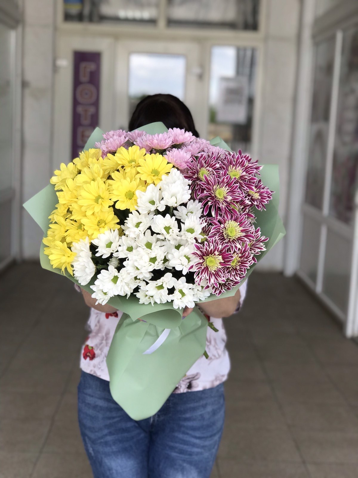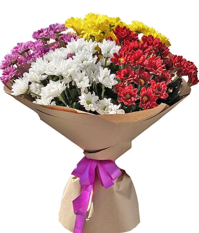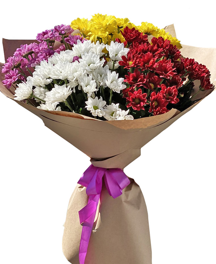 An extraordinary bouquet of 4 kinds of chrysanthemums designed like a ball.