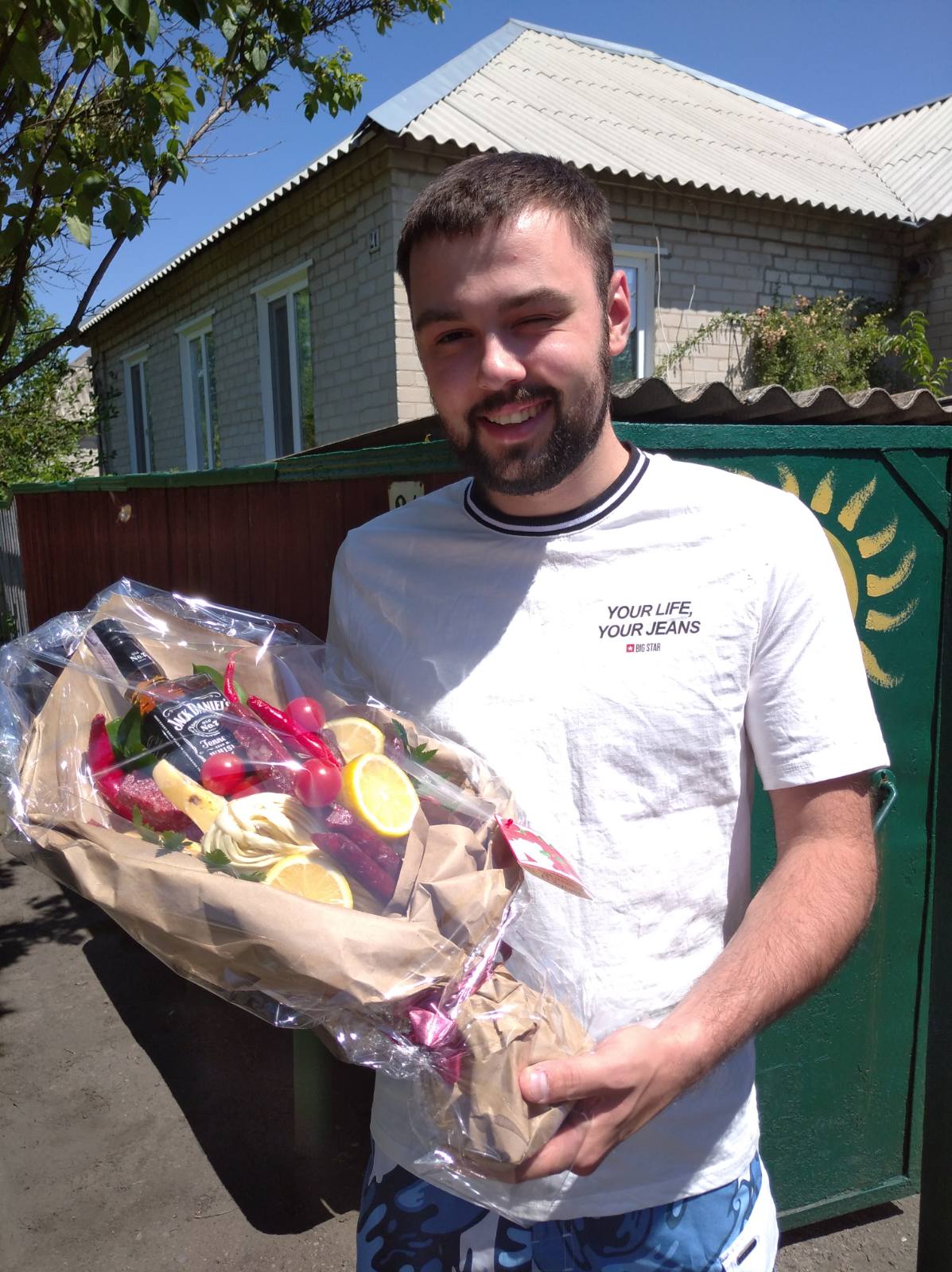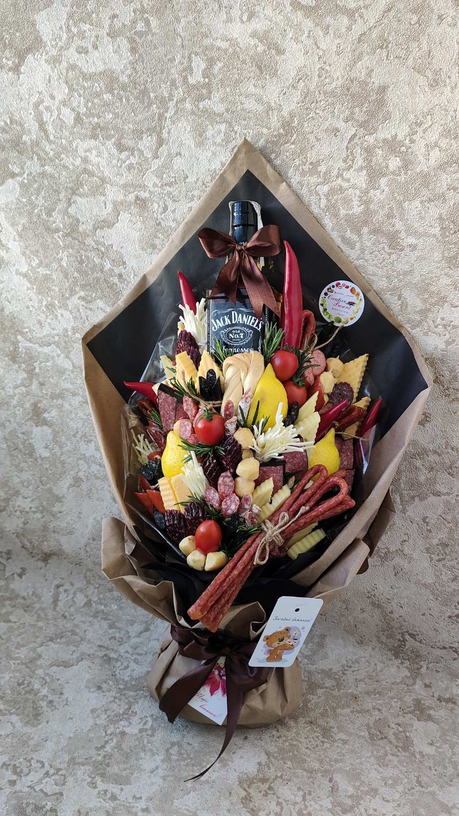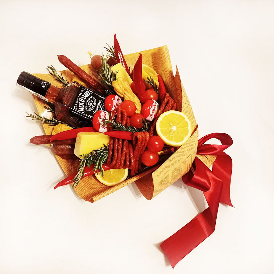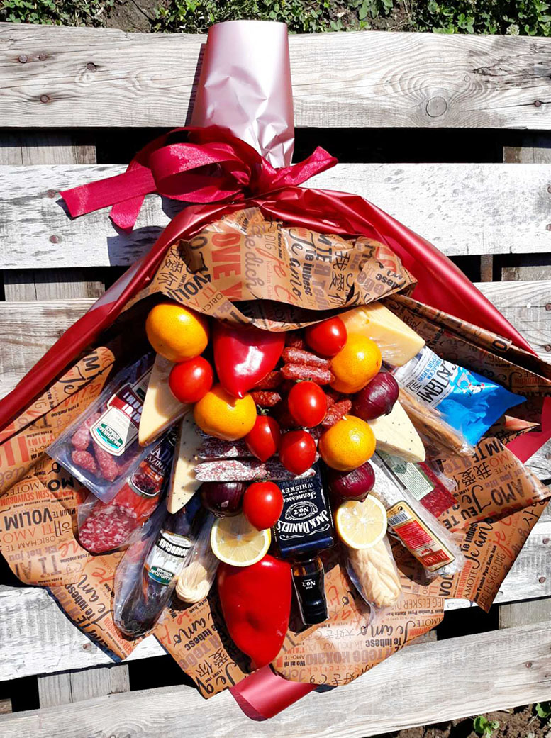 Please, notice, that the made bouquet can look a bit different than the one at the photo. Each desighner makes it using her personal views, taste and decorations. So, it can be a bit different, but at the similar same time look fun, original and ... tasty! Moreover, it happens so, that a newly created and delivered bouquet is even more interesting, funny, bigger and more beautiful than the original one!