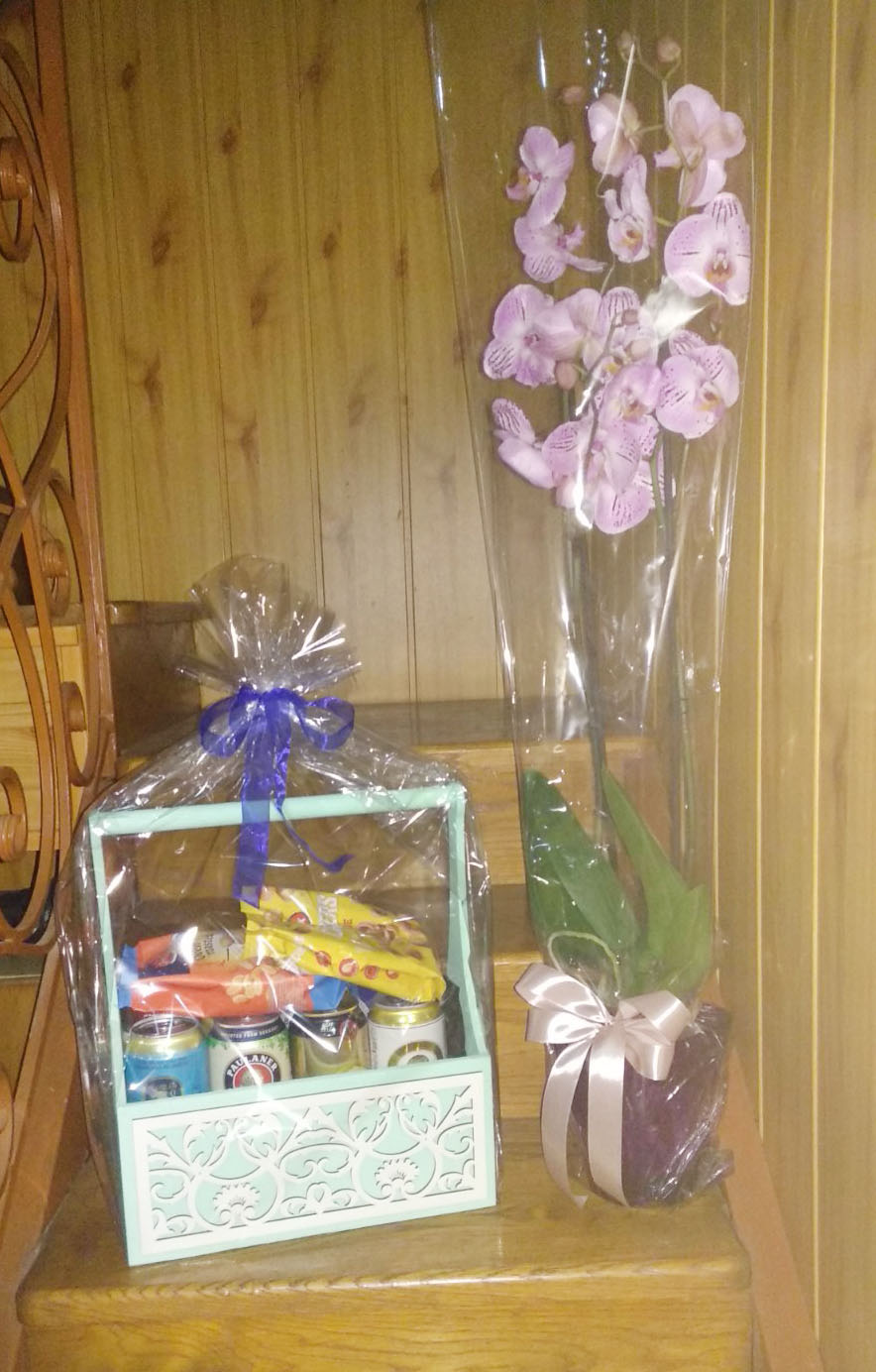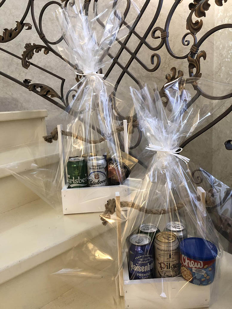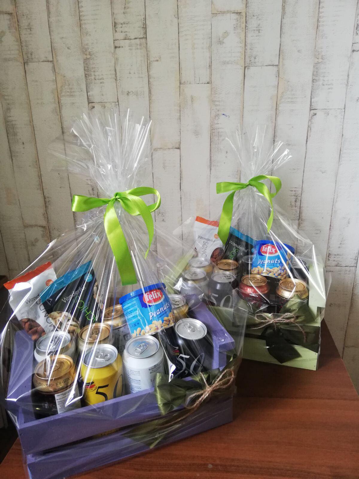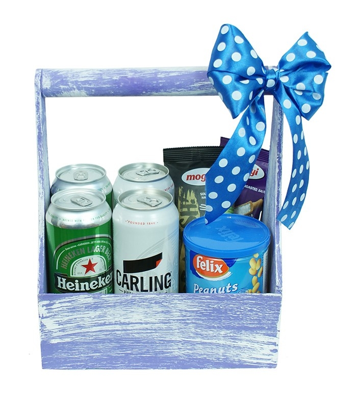 Send flowers and add this inexpensive funny set of beer and peanuts, arranged in a Gift box.