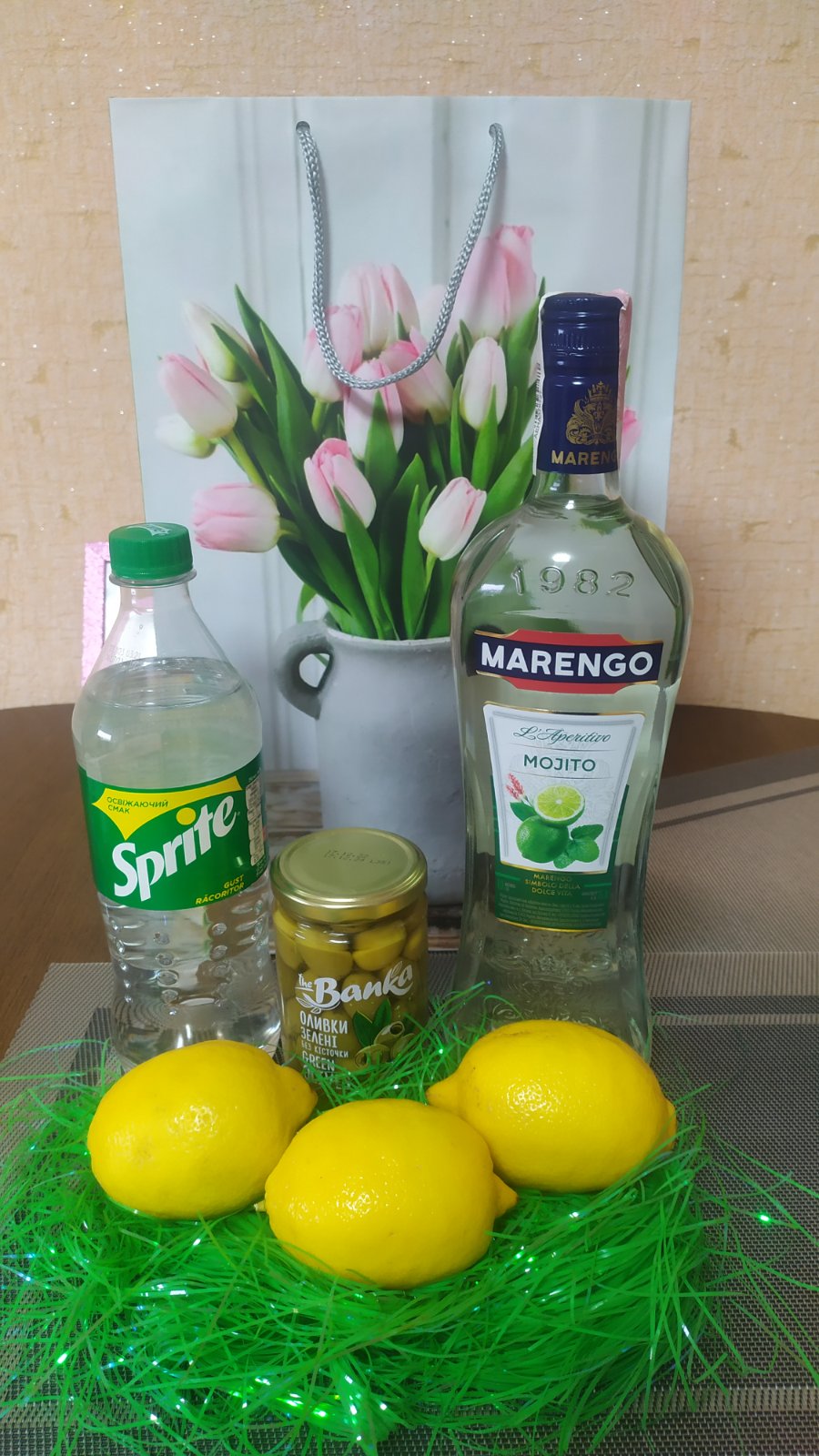 3 x Lime 1L x Marengo Mojito Vermouth 1L x Sprite, 1 x Olives can Mint...