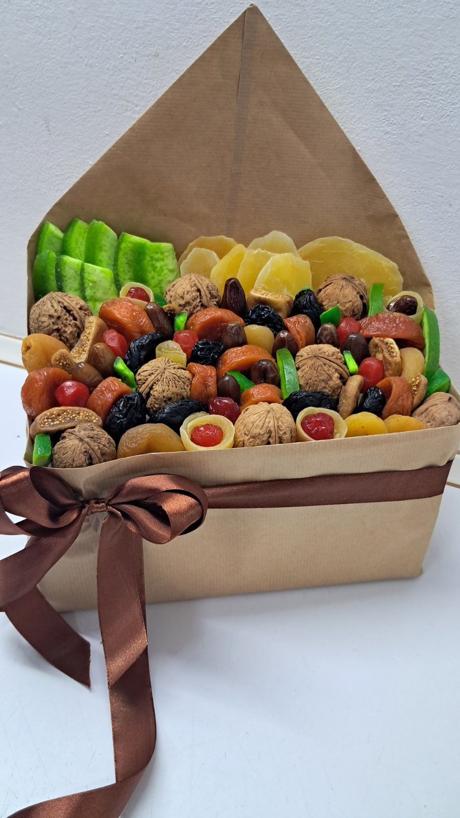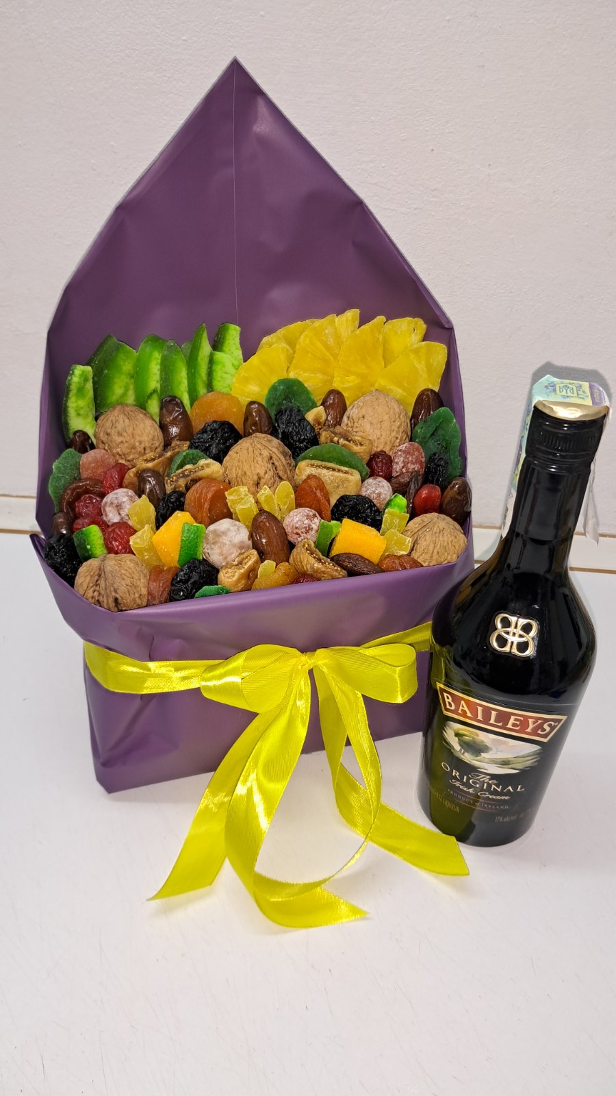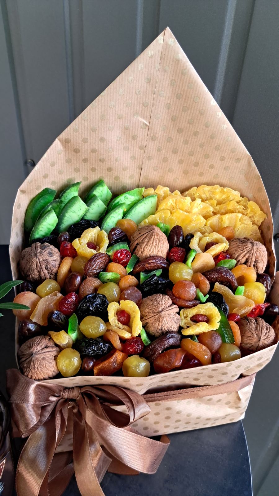 We are a flower shop and all gifts that are NOT flowers require more time for preparation. So, please, order this gift at least 3-4 days prior delivery. This arrangement will be made by its Author - professional Candied fruits designer and mailed to the delivery destination for the personal delivery.