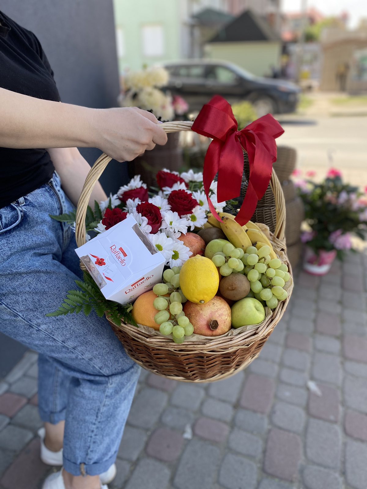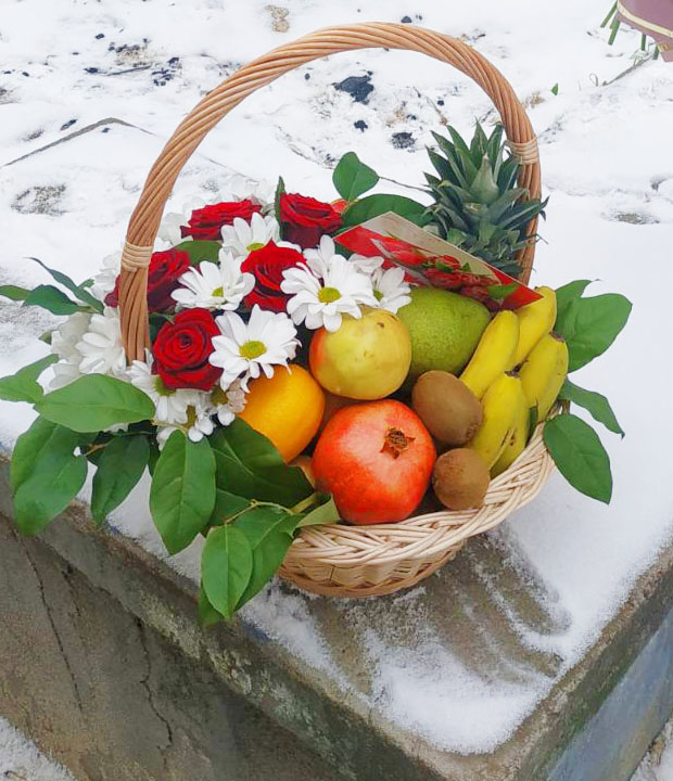Please note, that the basket content may differ from that you see at our picture.It depends upon the season and fruits choice at the local supermarkets.