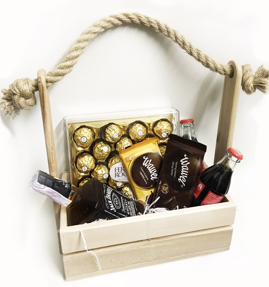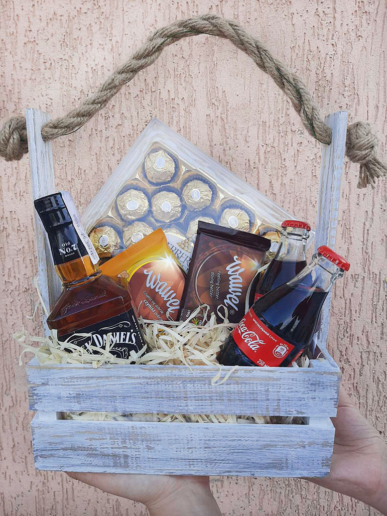 The best quality well known and famous in the whole World Jack Daniels with a couple other things that altogether make an elegant and pleasant gift for any occasion, as well as for NO occasion.