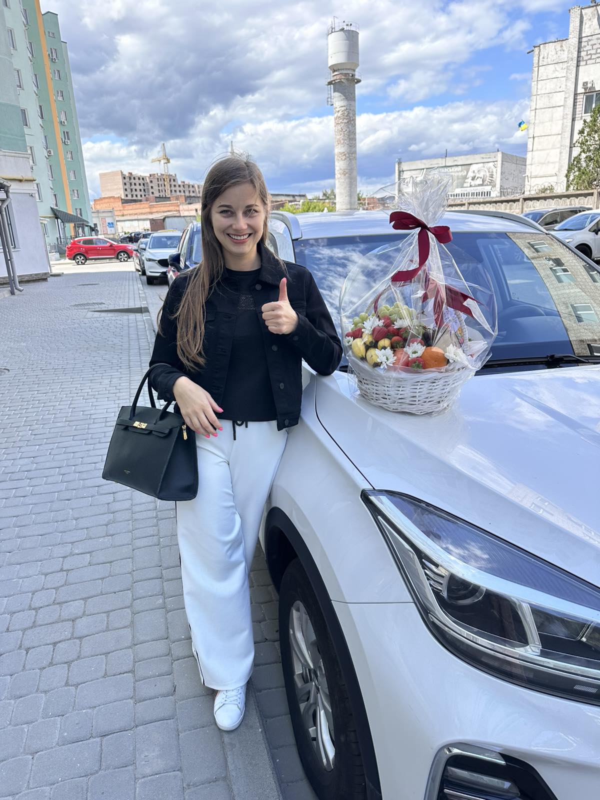 Every arrangement is designing based at the materials selection that is available at the moment at our flower shop (containers, boxes, baskets, strips, etc.). It means, that the ordered gift in general might look a bit differently than the one at our photo. However we'll do our very best to design it as close to what you see as possible. The high quality of the products is definitely guaranteed. Please, scroll down this page and take a look at the photos of this gift, that we delivered previously.