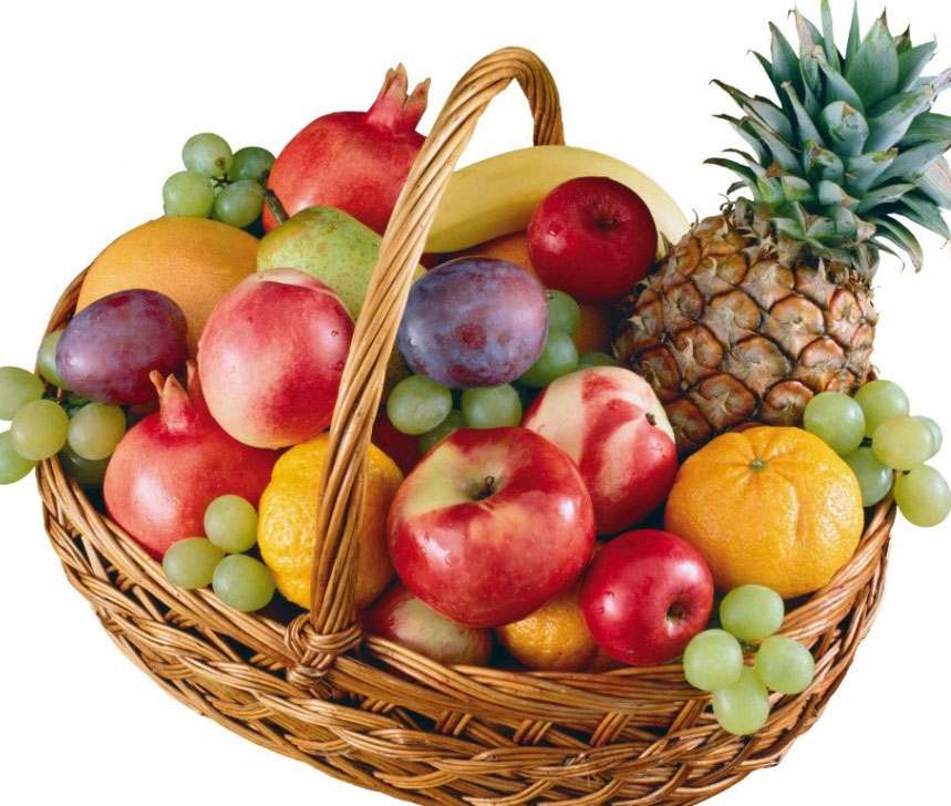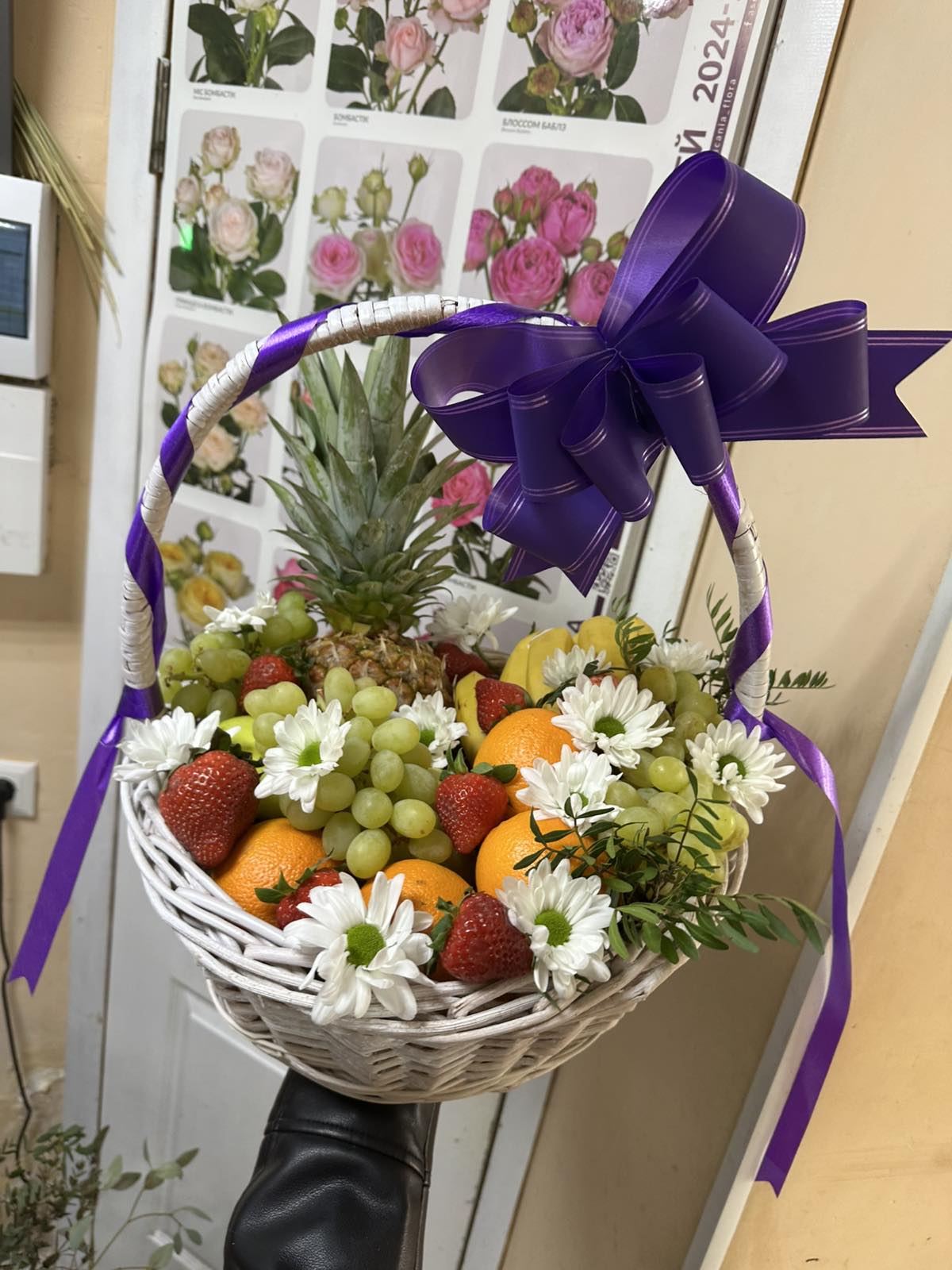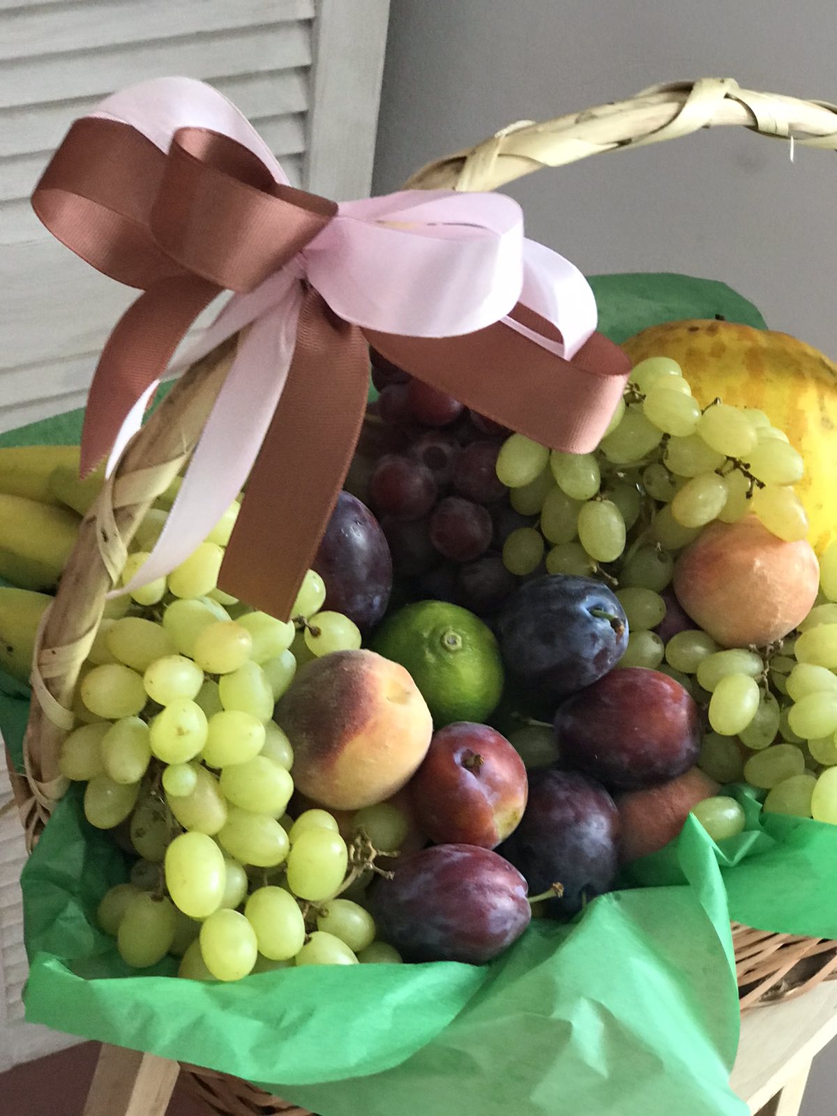 We'll purchase a fresh and nice fruits only at our local supermerkets: pineapple, apples, pears, grape, lemons, oranges, kiwi - as many sorts as it is available there. Plums, peaches or pomegranate (depend on a season). The weight of such a wonder is about 5 kilos!