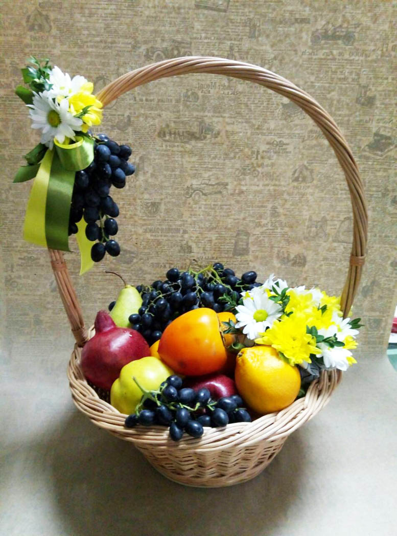 Please note basket content may differ from that you see at our picture. It depends upon season of year, city and availability fruits at the market. Especially it concerns small cities.