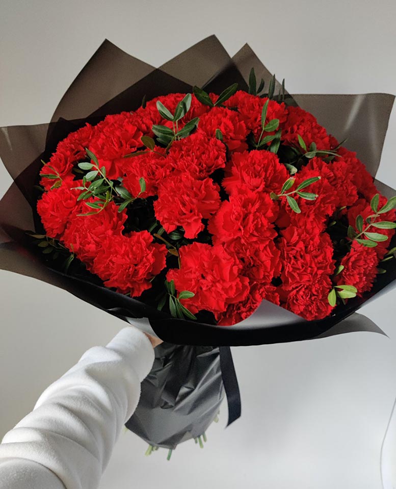 At the shown bouquet there are 44 Red Carnations, but you could choose