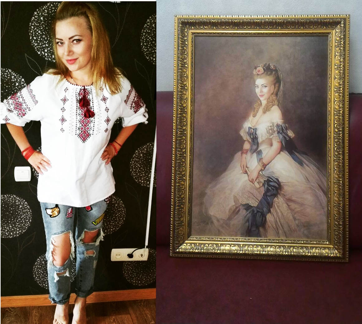 Every girl wants to become a Queen! And it is possible at lease on an ancient portrait on a real canvas! Such Portrain is printing our on the canvas.