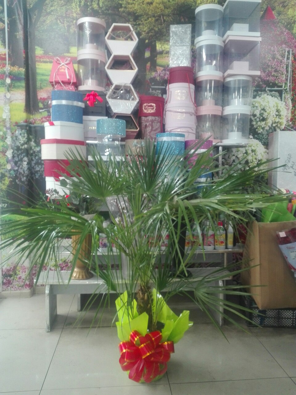 A 50 cm palm or even up to 110cm depends on a kind of palm: Dracaena, Fan palm, date palm, Dragon tree palm, Yucca.