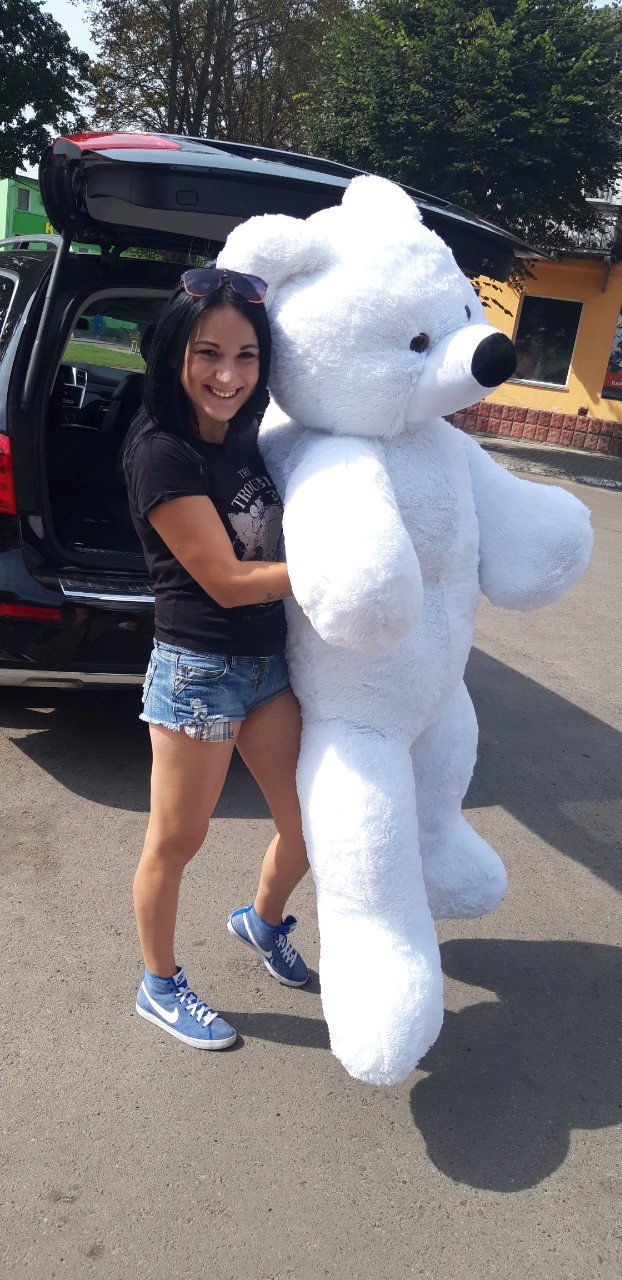 On the photo you can see and compare the size of the Teddy to a girl holding it.