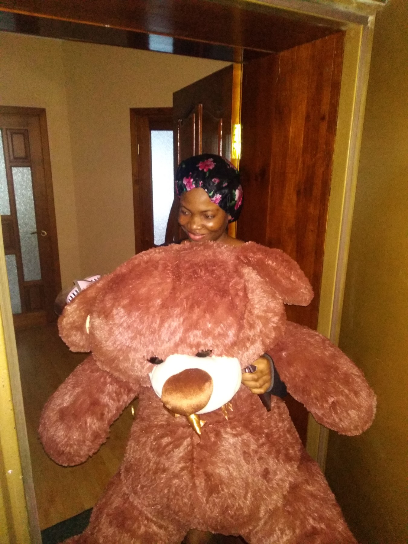 On the photo you can see and compare the size of the Teddy to a girl holding it.