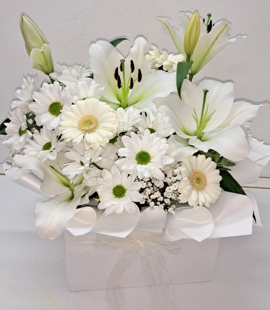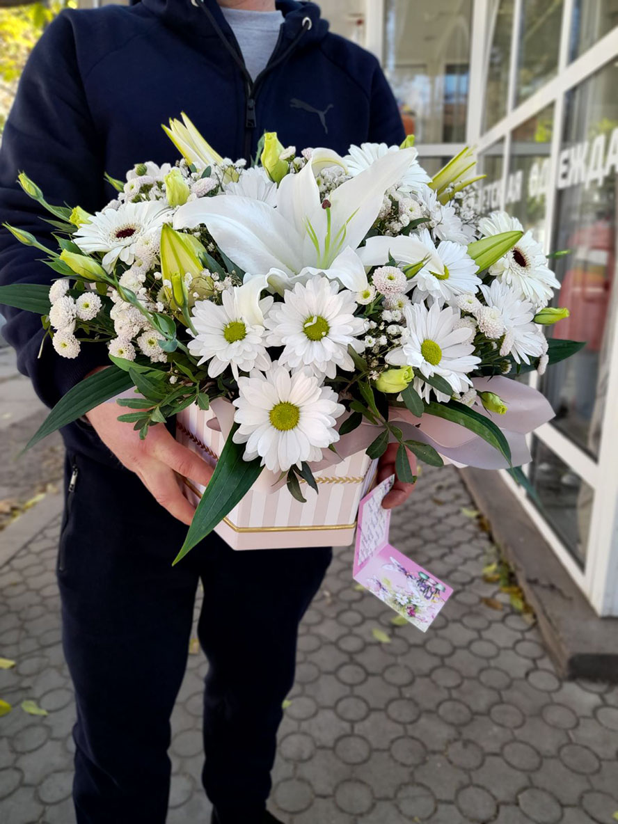 The arrangement size: height - 40 cm, diameter - 40-45 cm