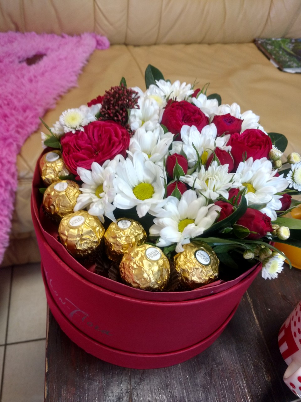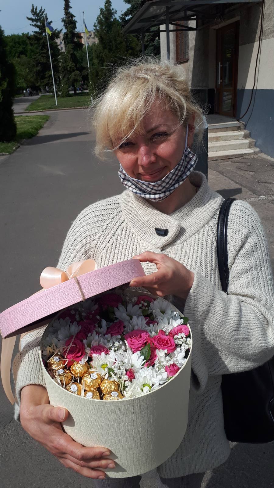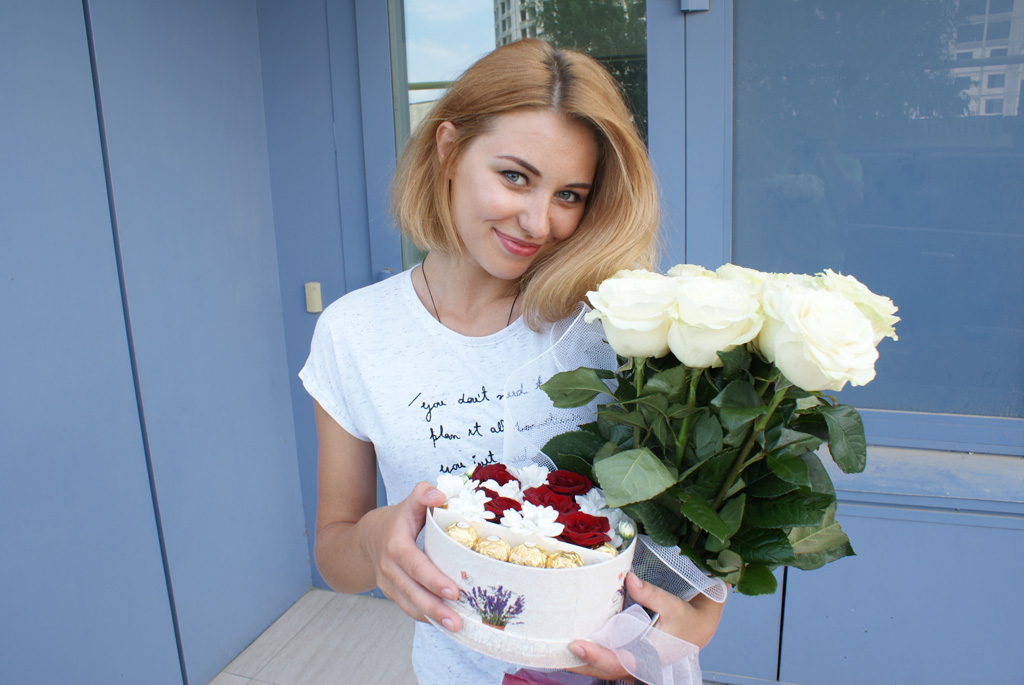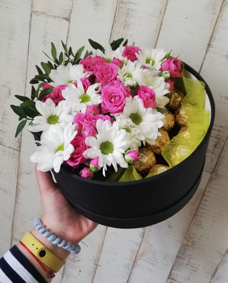 The color of the box can differ than the one at our photo. We'll pick the most convenient for this arrangement!