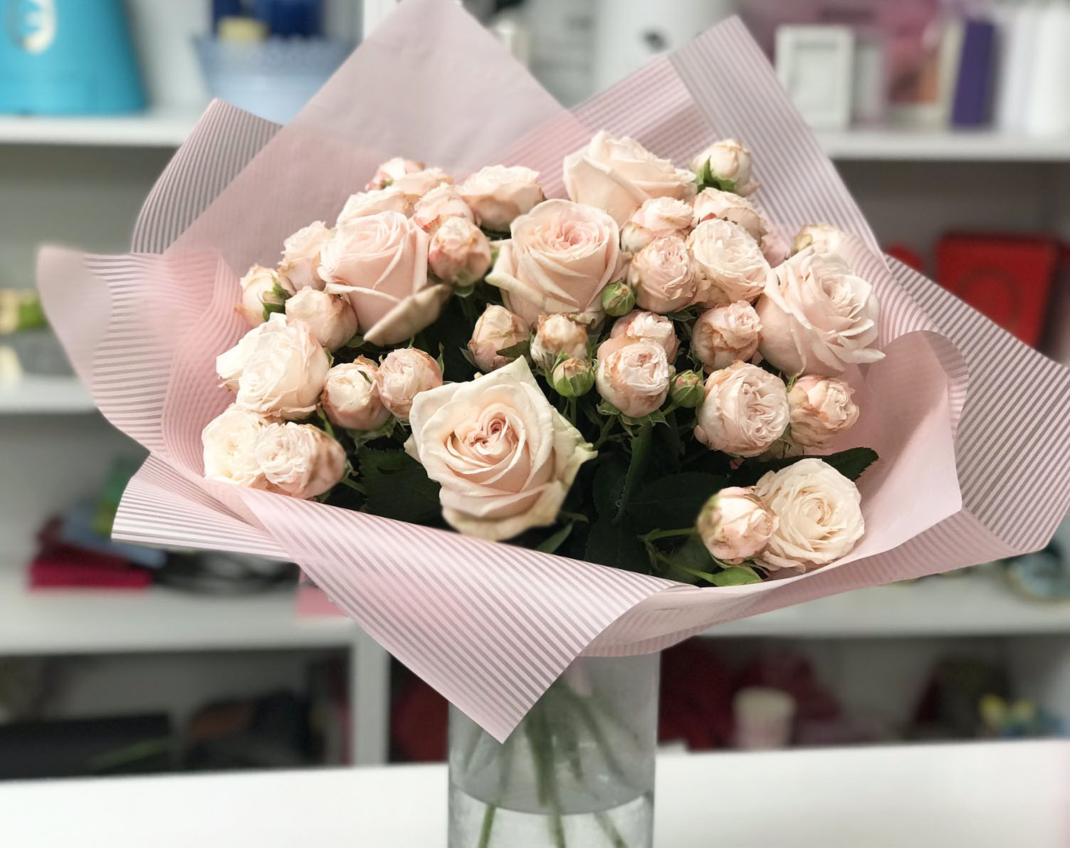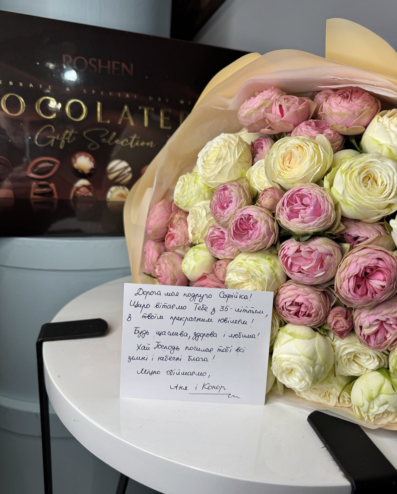 Очень вам благодарна за бесподобный букет роз и ваш профессионализм. Спасибо большое за фото. Моя мама очень была рада такому прекрасному сюрпризу. Вы помогли нам красиво и элегантно поздравить самого дорогого нам человека.