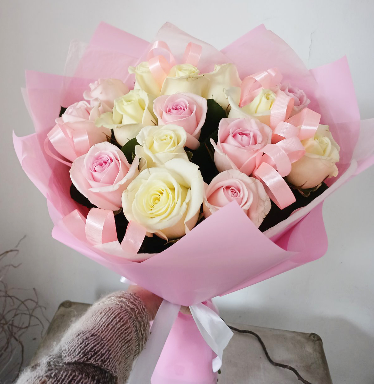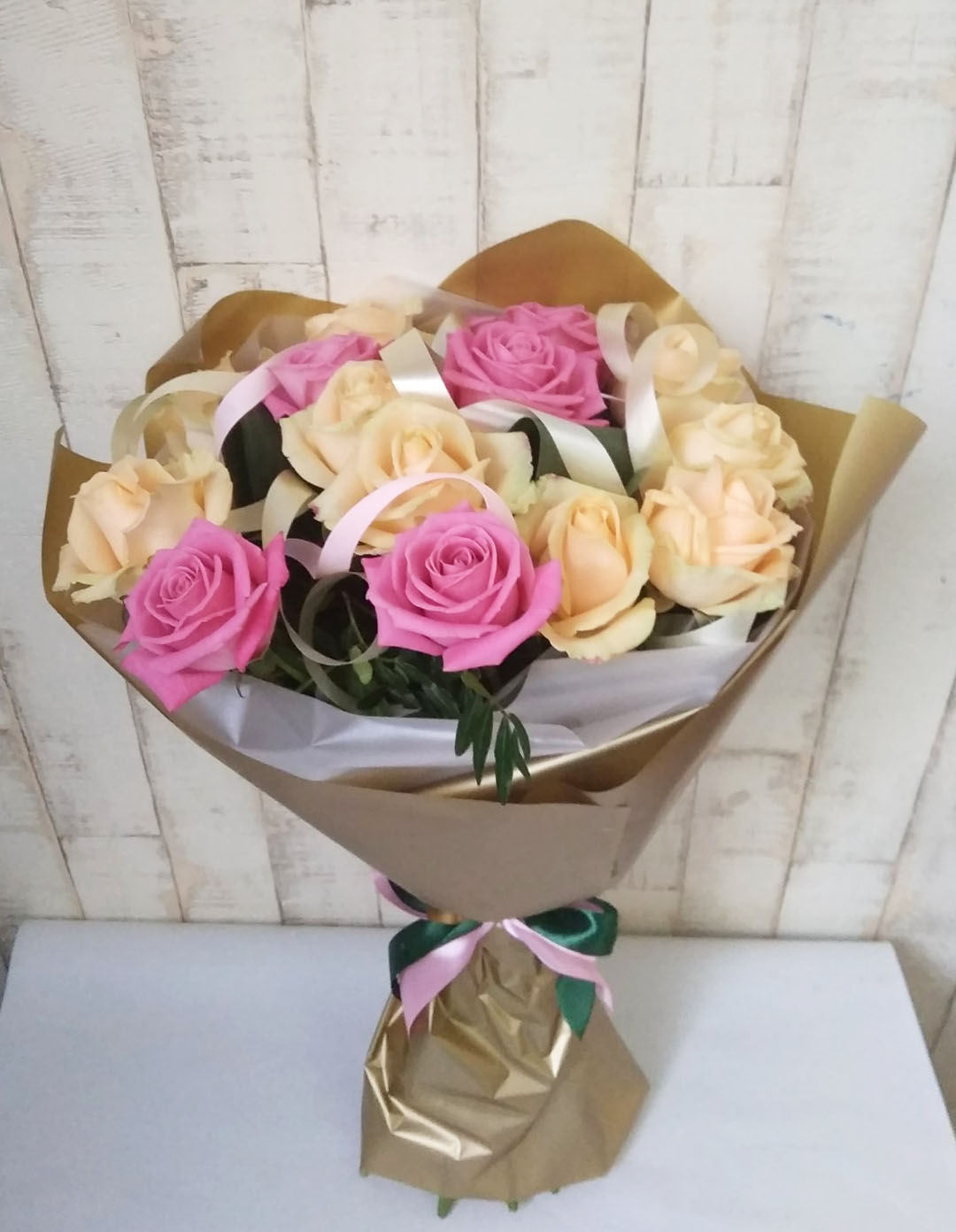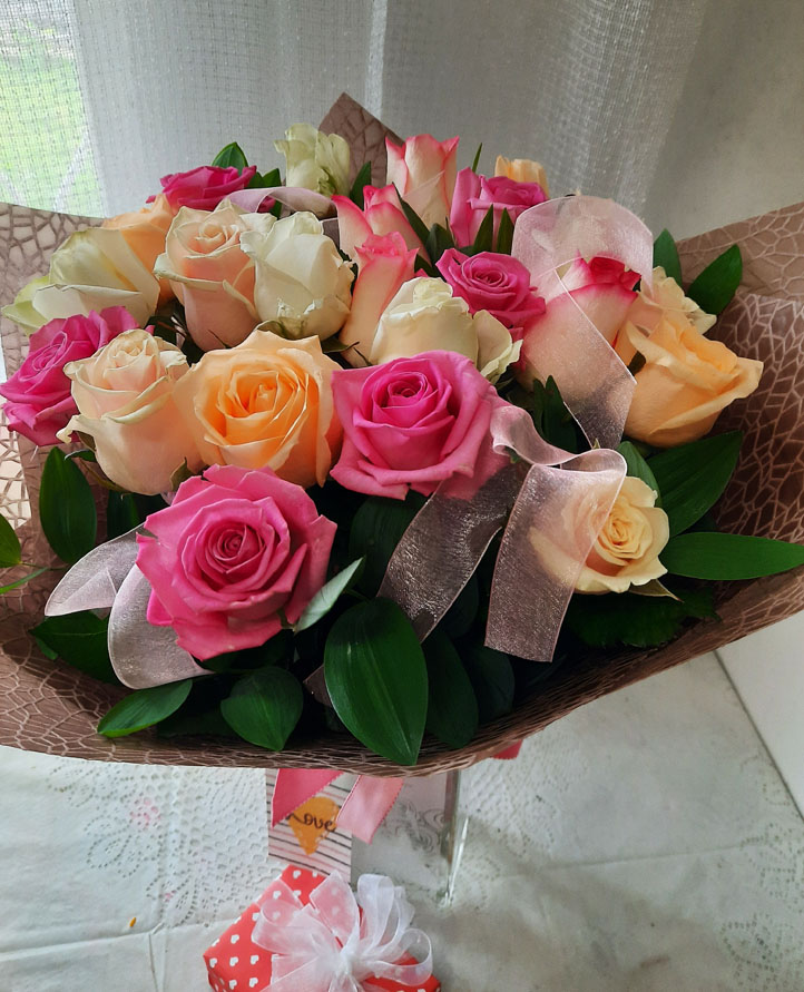 Elegant wrapping, satin ribbons.... Please, make your choice as to the number of roses at your bouquet.