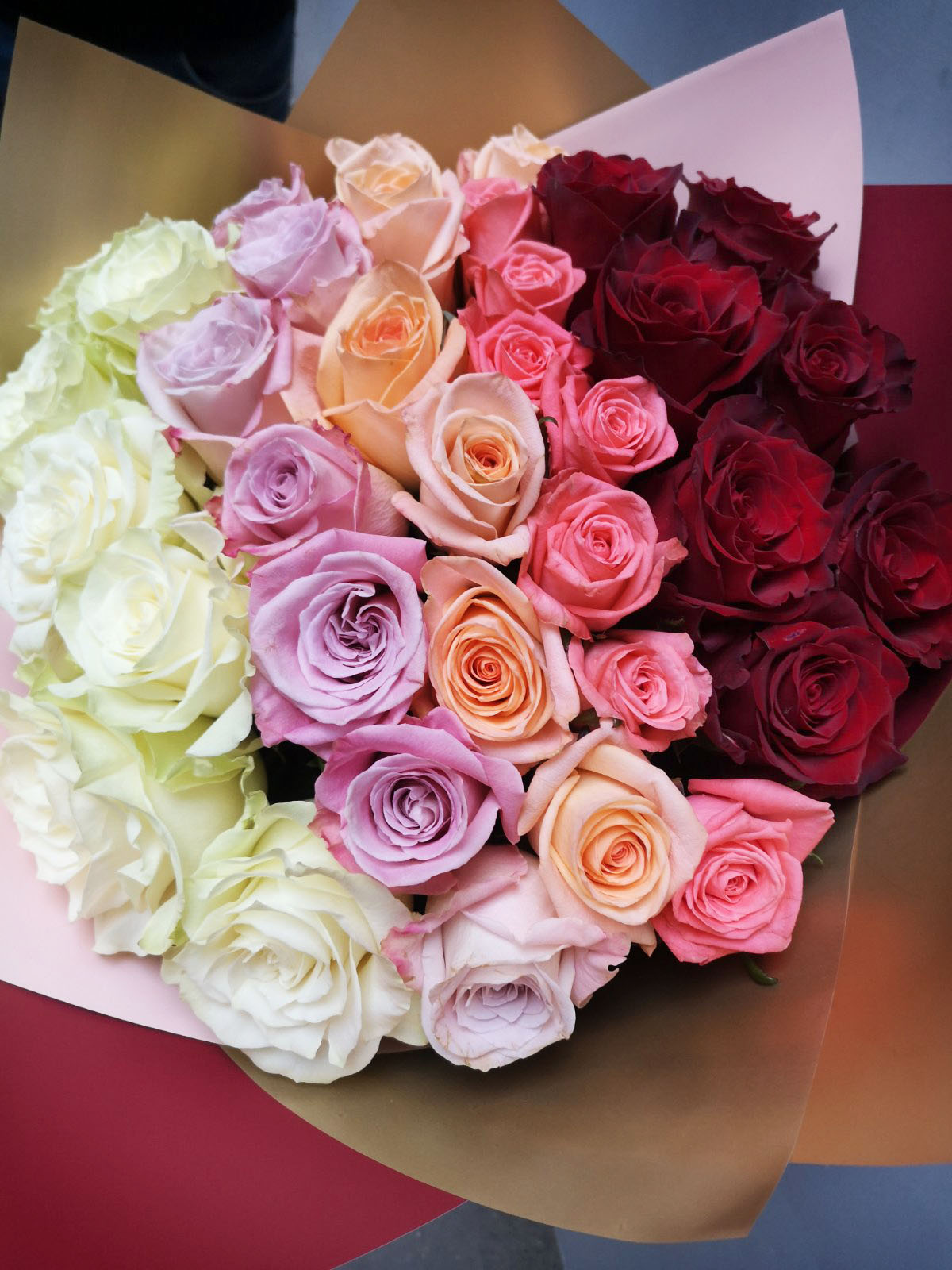 Everything was perfect, the roses looked stunning in their unique coloration from light colors to stunning dark red roses.