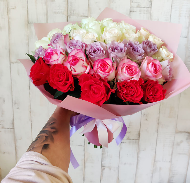 Please, choose the amount of the roses but there will be 4-5 colors anyway. You can change the amount of the roses in the bouquet