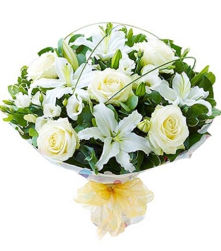 15 x snow-white Roses 3 bunches of Lilies
