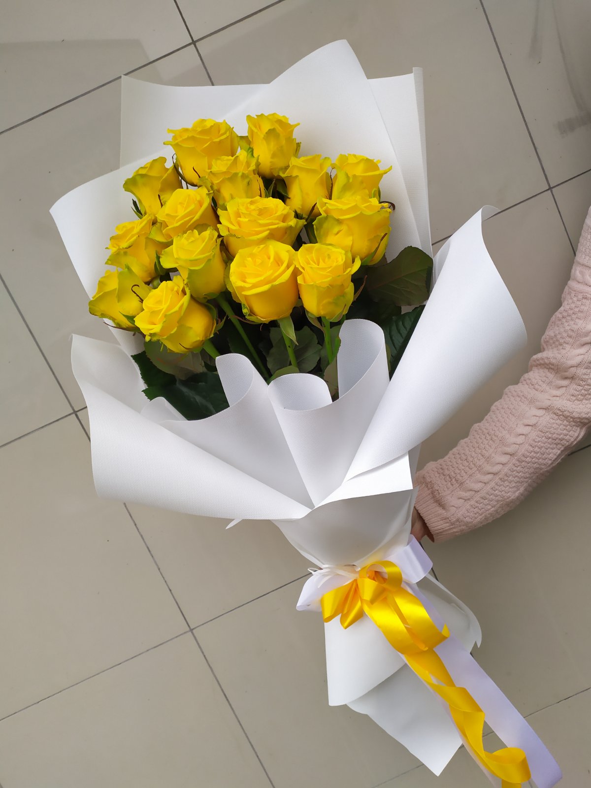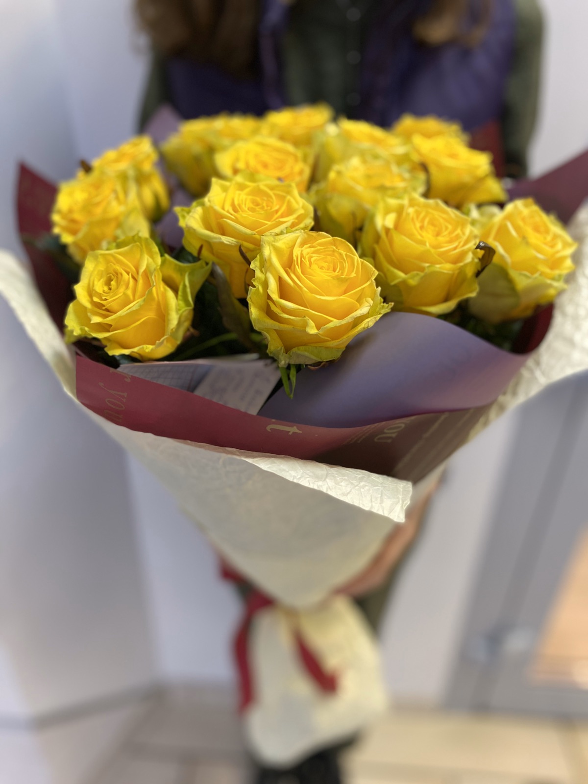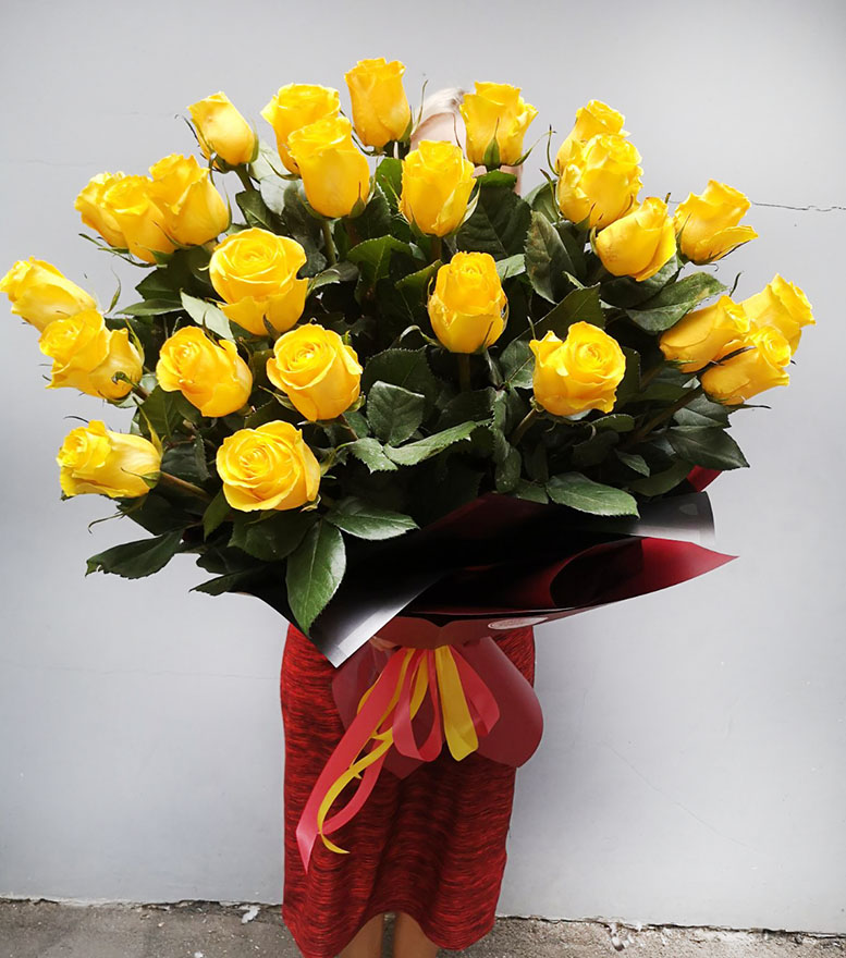 ATTENTION, please!! Yellow color roses are quite rare in Ukraine and there is no guarantee we have them available at the moment of placing order. So, we'd appreciate if you inform us about your "choice #2" and "choice #3" color so that we could substitute yellow roses with another color.