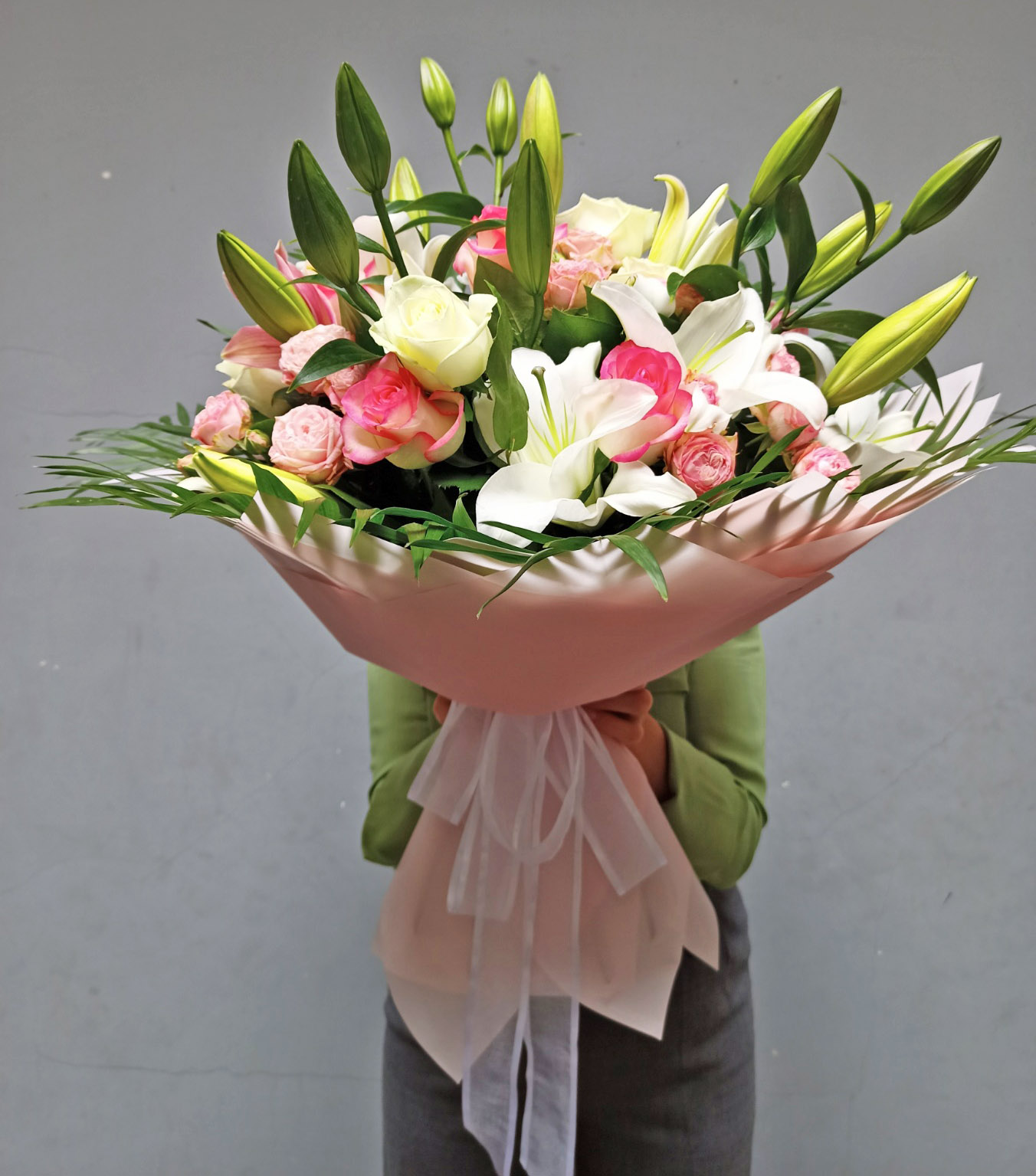 Our photo shows "Large" bouquet, but there are a smaller options available.