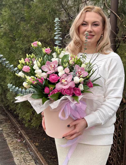 Delightful and tender flower arrangement at a Hat Box.