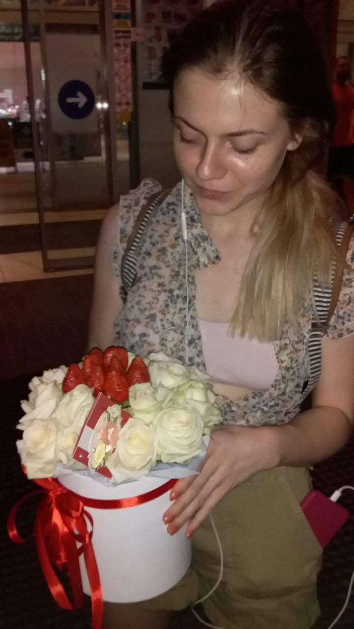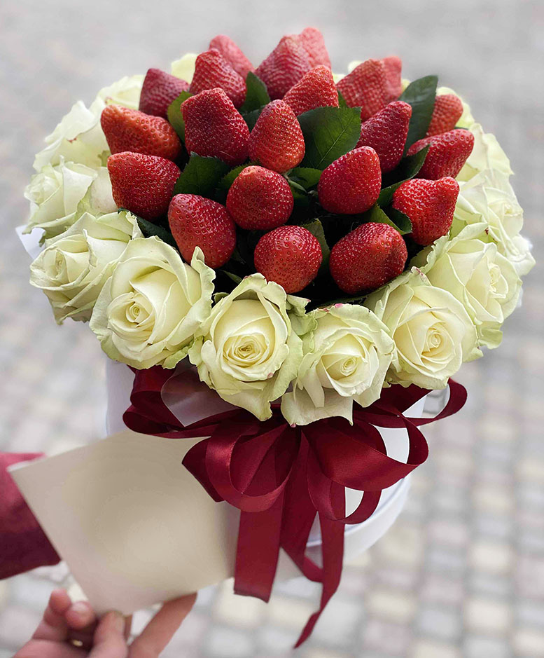 This impressive Hat box arrangement can be delivered at all destinations of Ukraine in May and June - at the peak of the "Strawberry season".