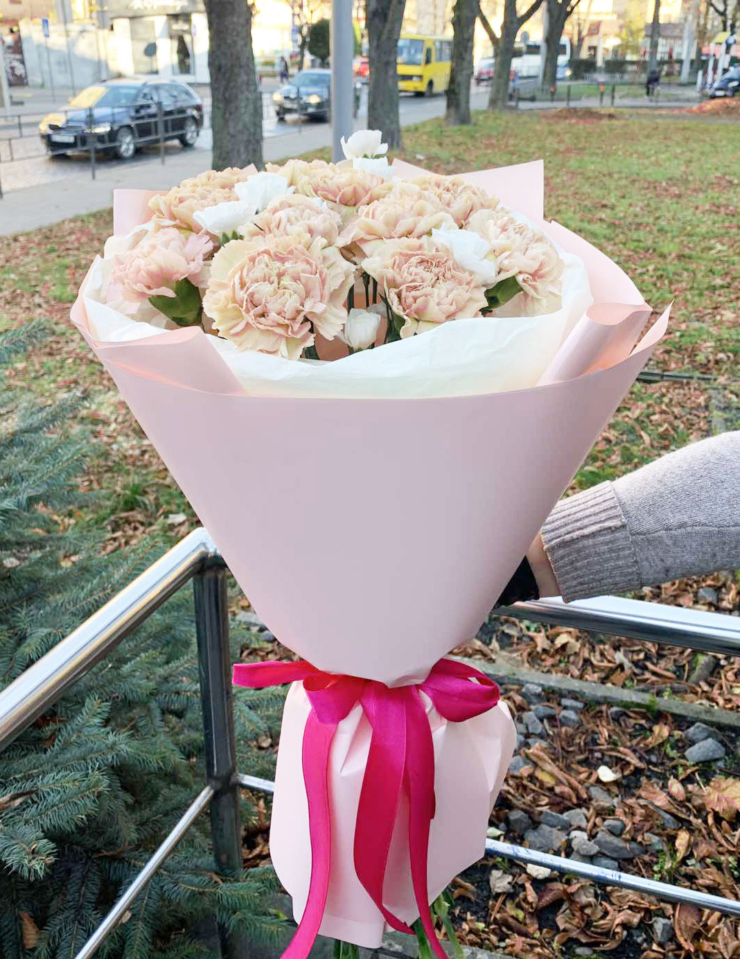 В букете на нашем фото - 21 крупная гвоздика.