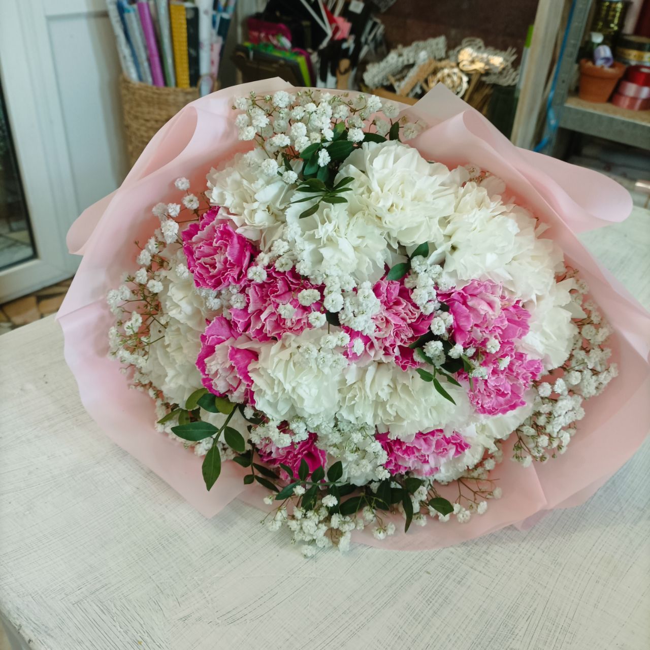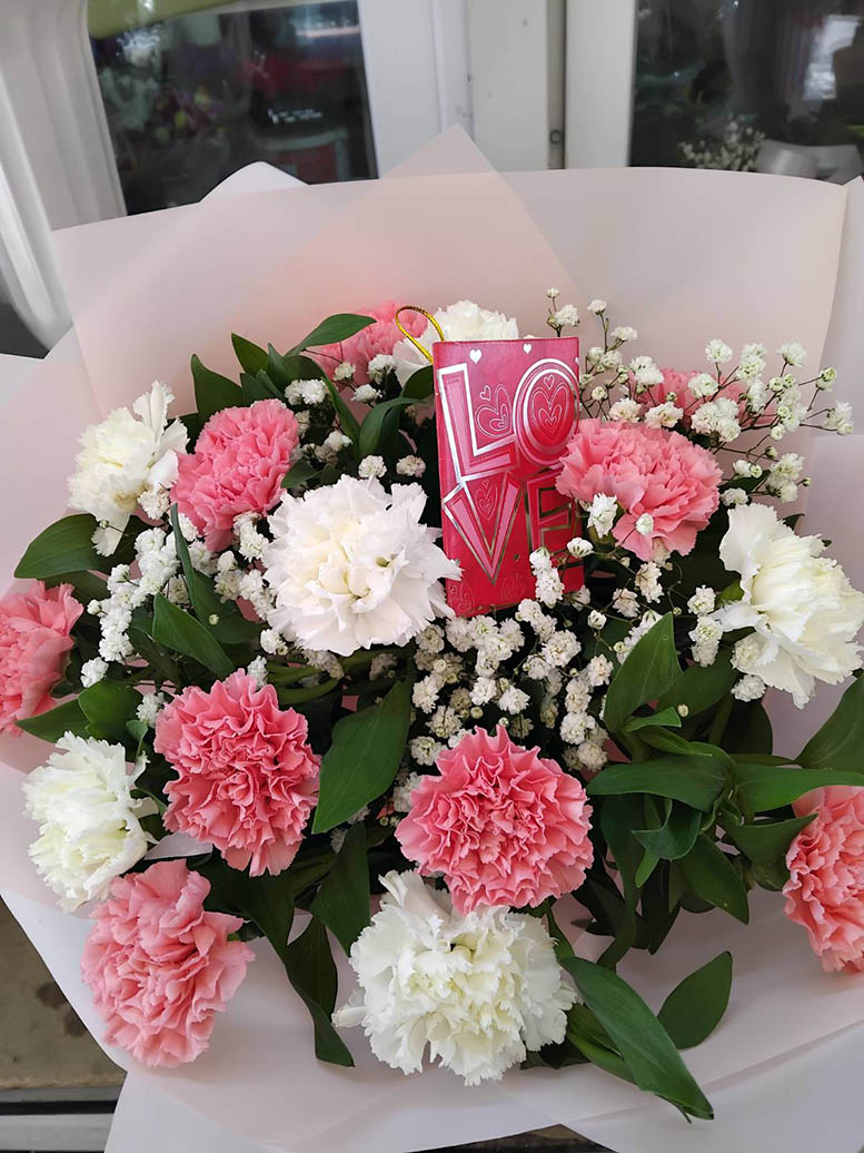Микс белых и розовых гвоздик ... от 9 до 101