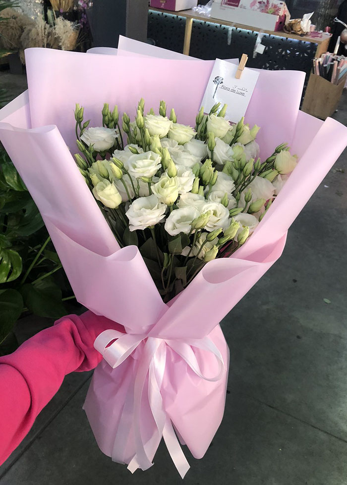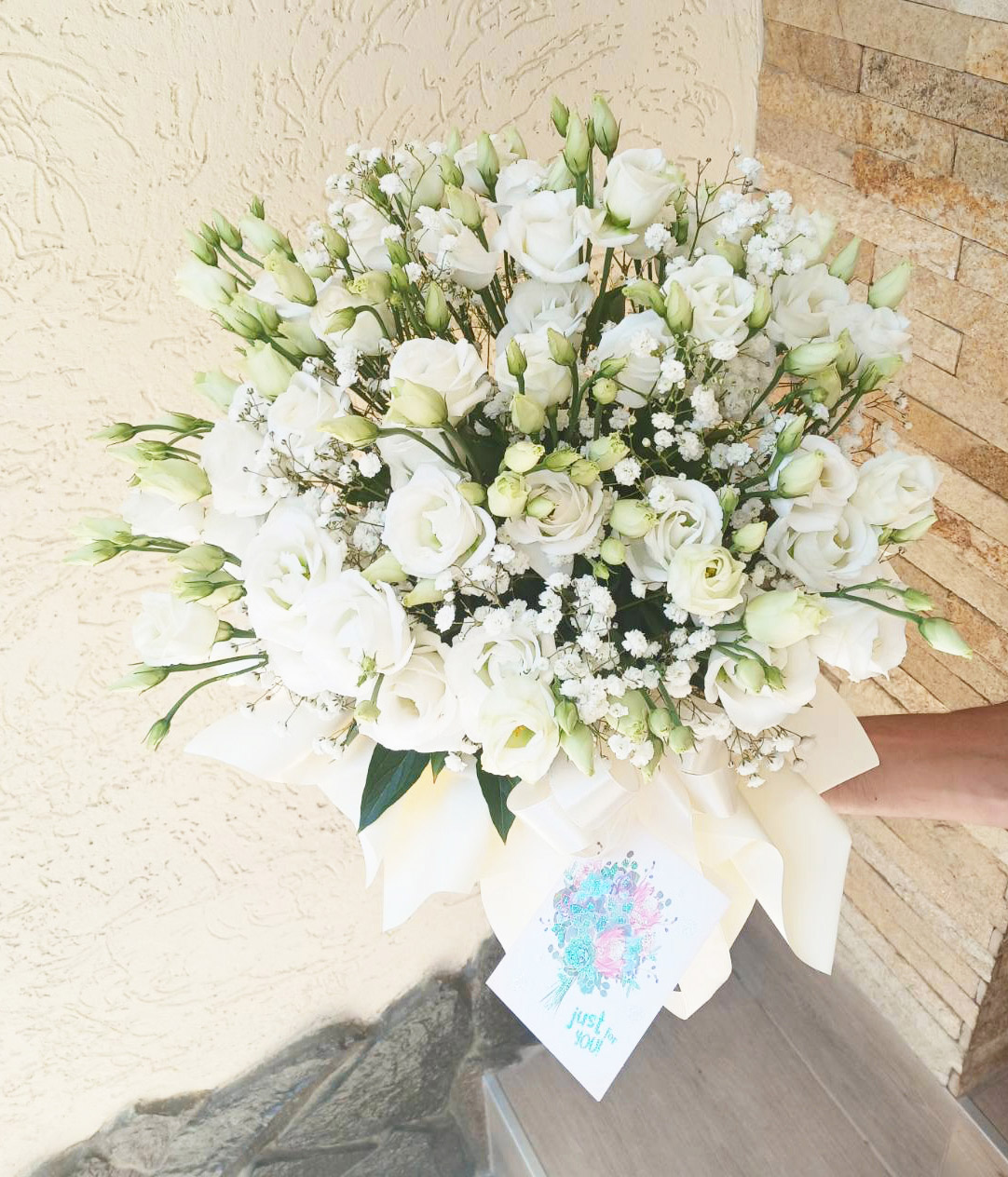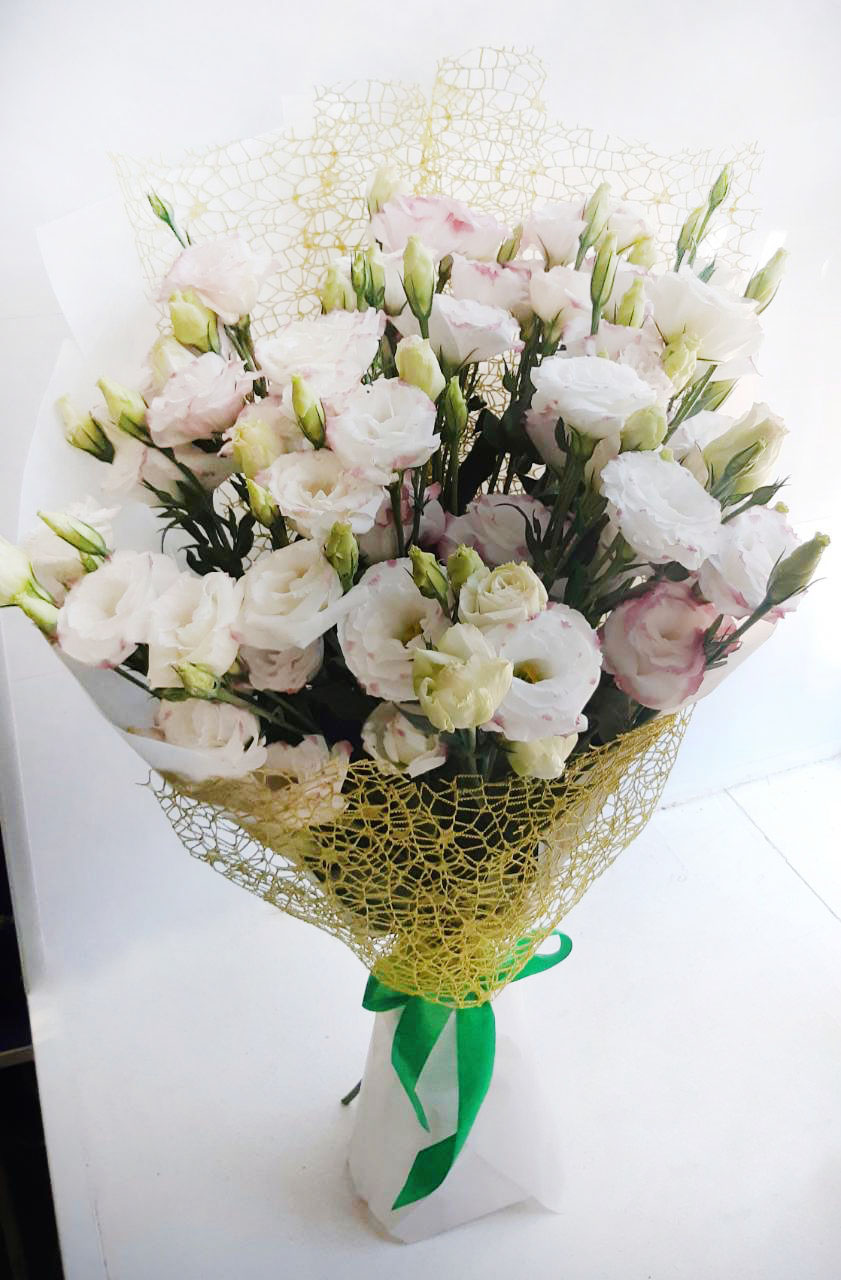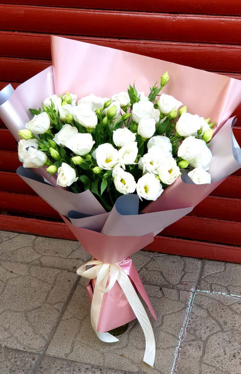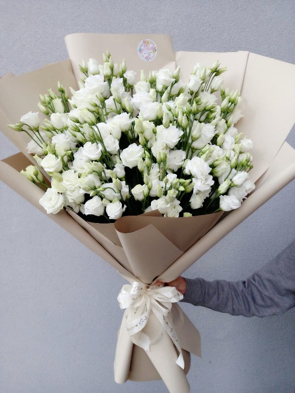 Эустома - совершенно особый цветок в ряду своих не менее прекрасных и даже самых дорогих и экзотических собратьев. В нем и нежность, и роскошь, и совершенство. Даже несколько веточек создают объем - на каждой ведь будет несколько раскрытых цветков и еще несколько бутонов, которые непременно распустятся позже. А еще каждая ветка делится на несколько меньших, каждая со своими листиками. Таким образом, букет из 25 веток эустомы выглядит огромным и роскошным!