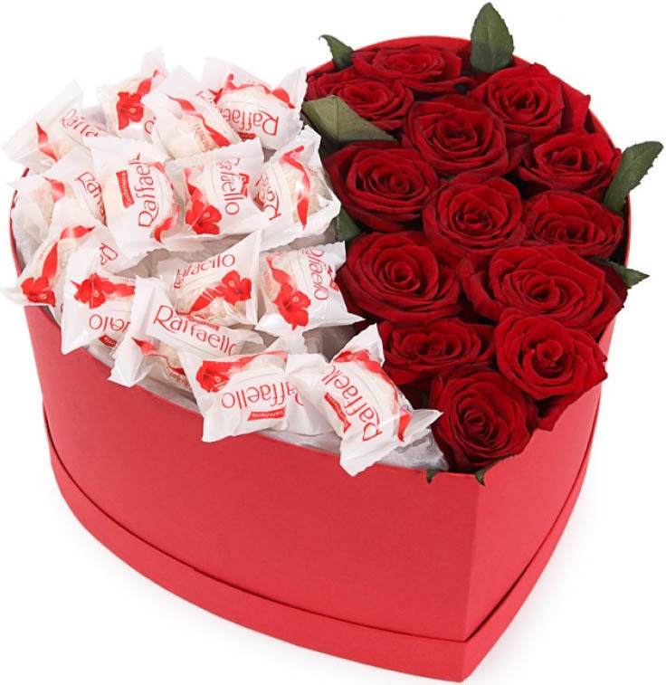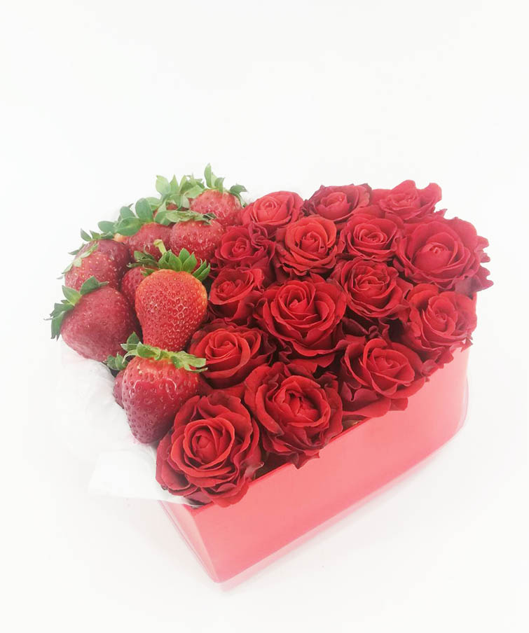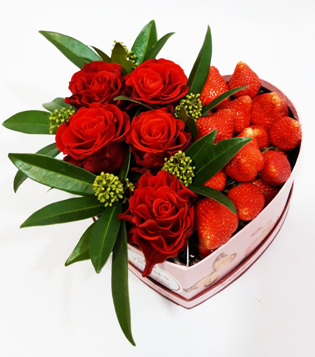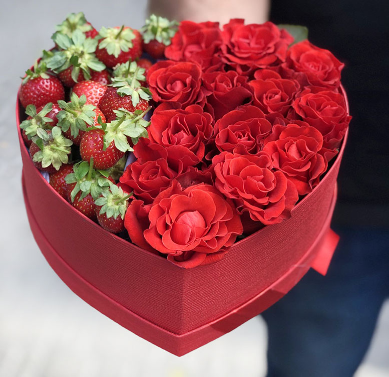 Такая подарочная коробочка вмещает все это и даже больше! Красные розы, алые ягоды клубники.... А форма самой подарочной коробки еще и говорит о чувствах отправителя подарка!
