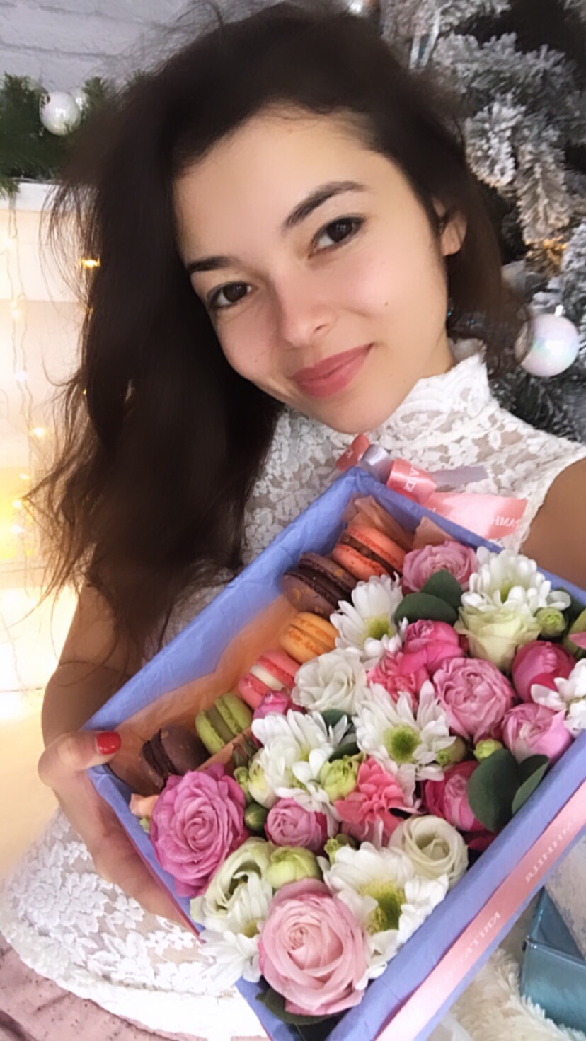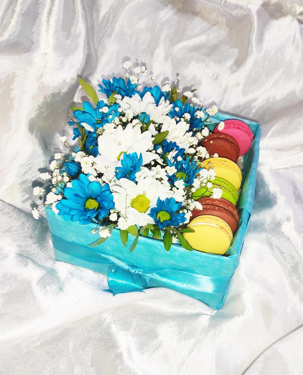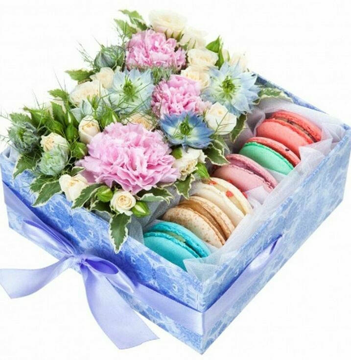 В этой красивой подарочной коробочке - цветы и несравненные макаруны. Или макаронс - так тоже говорят.
