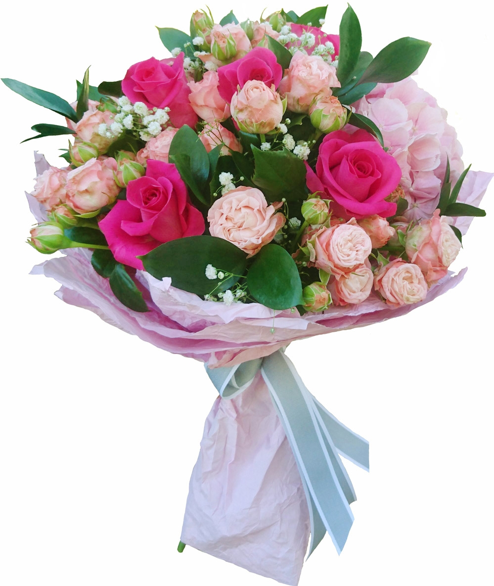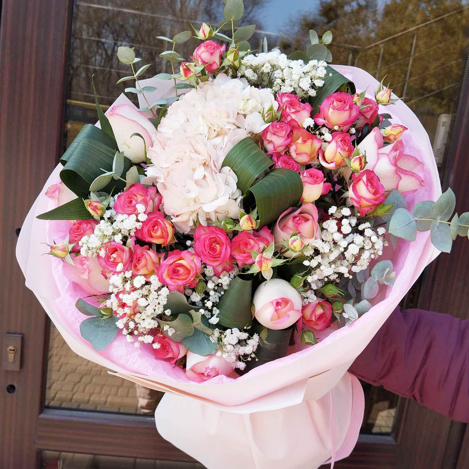 Абсолютная красота и очарование - букет в розово-красно-малиновых тонах с сливочно-белым акцентом.
