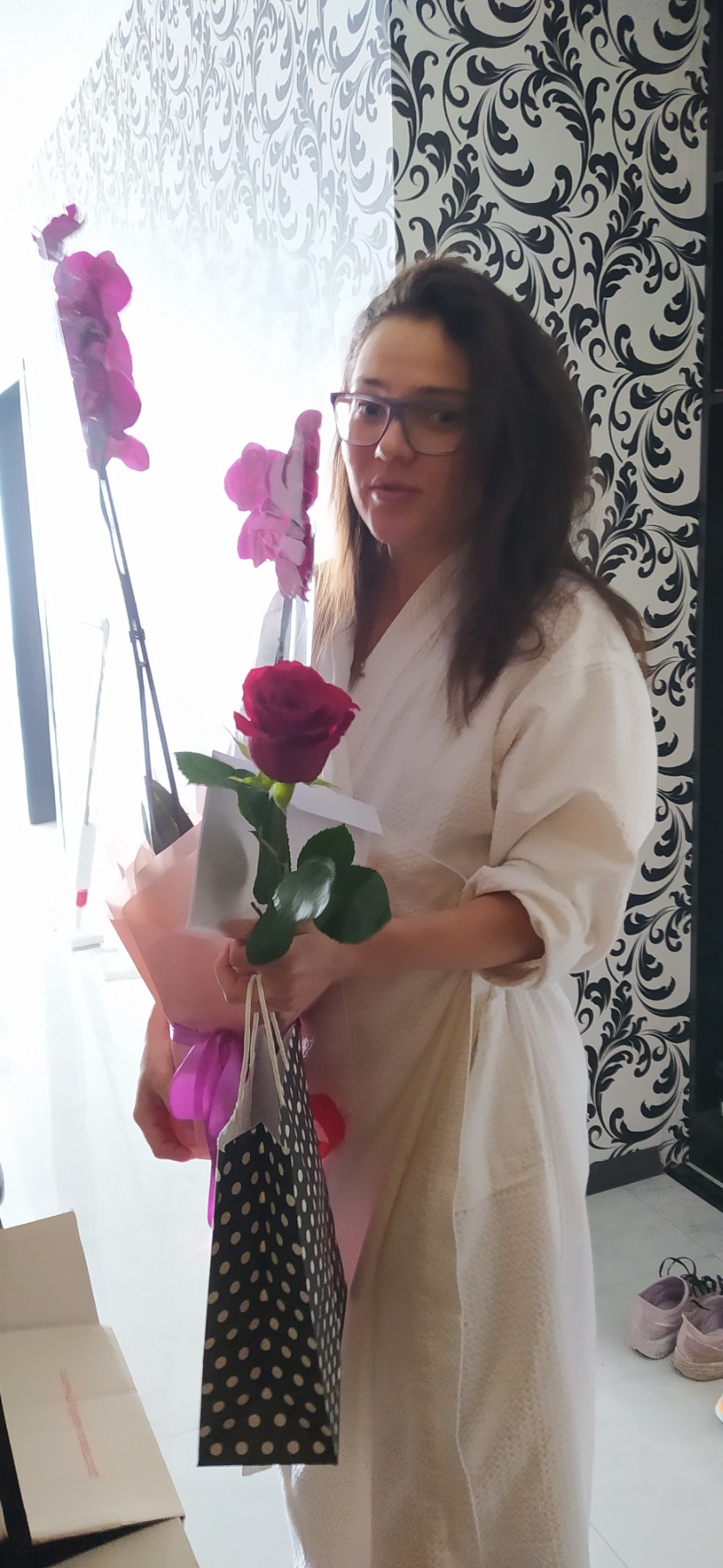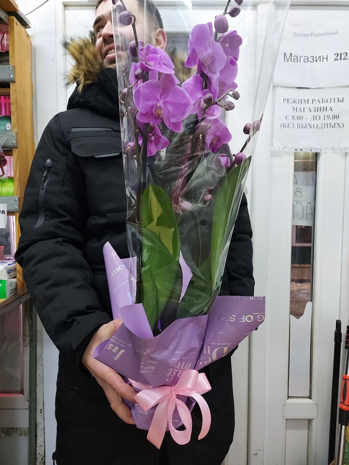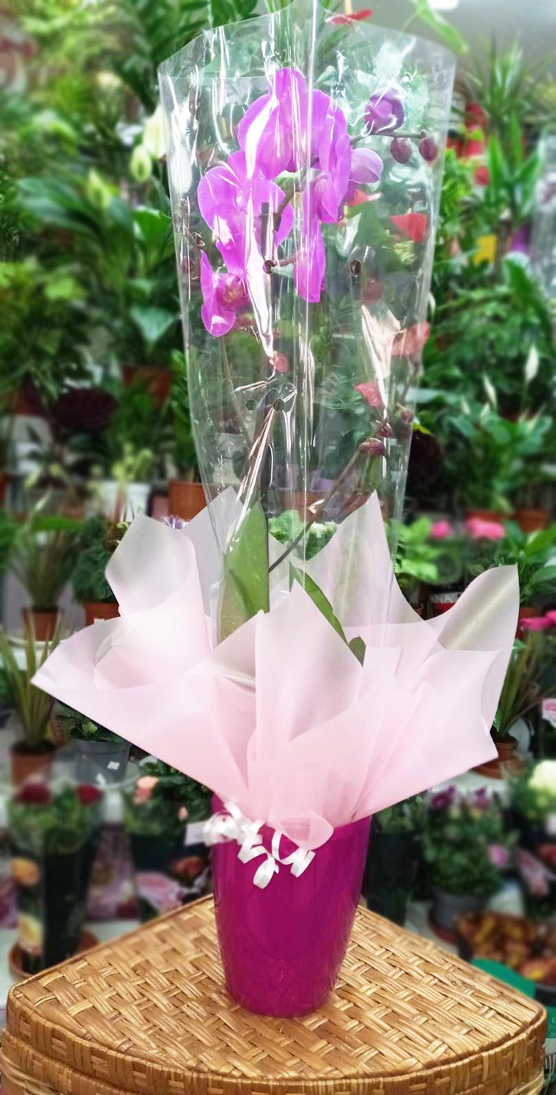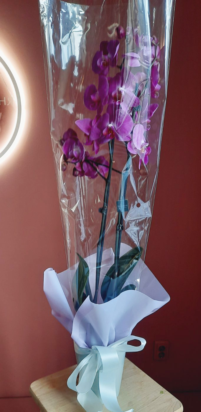 Она будет красиво оформлена как настоящий подарок - вы можете увидеть примеры наших предыдущих доставок такой орхидеи на фото ниже.