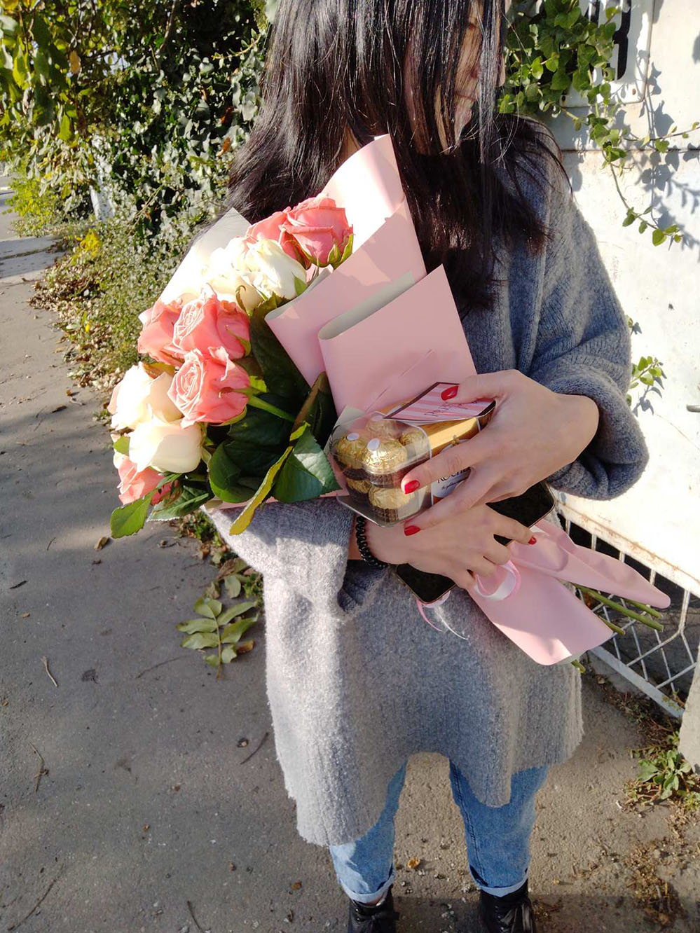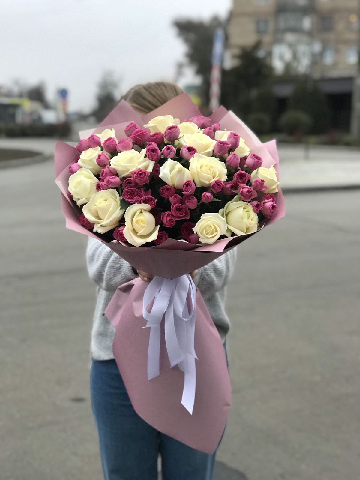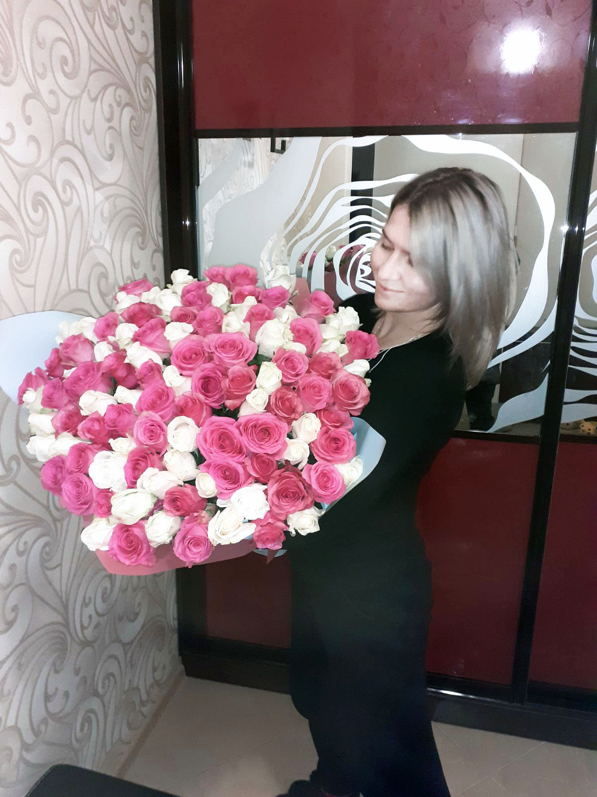 Фото наших получателей цветов и подарков - Белые & Розовые. Букеты от 7 до 101