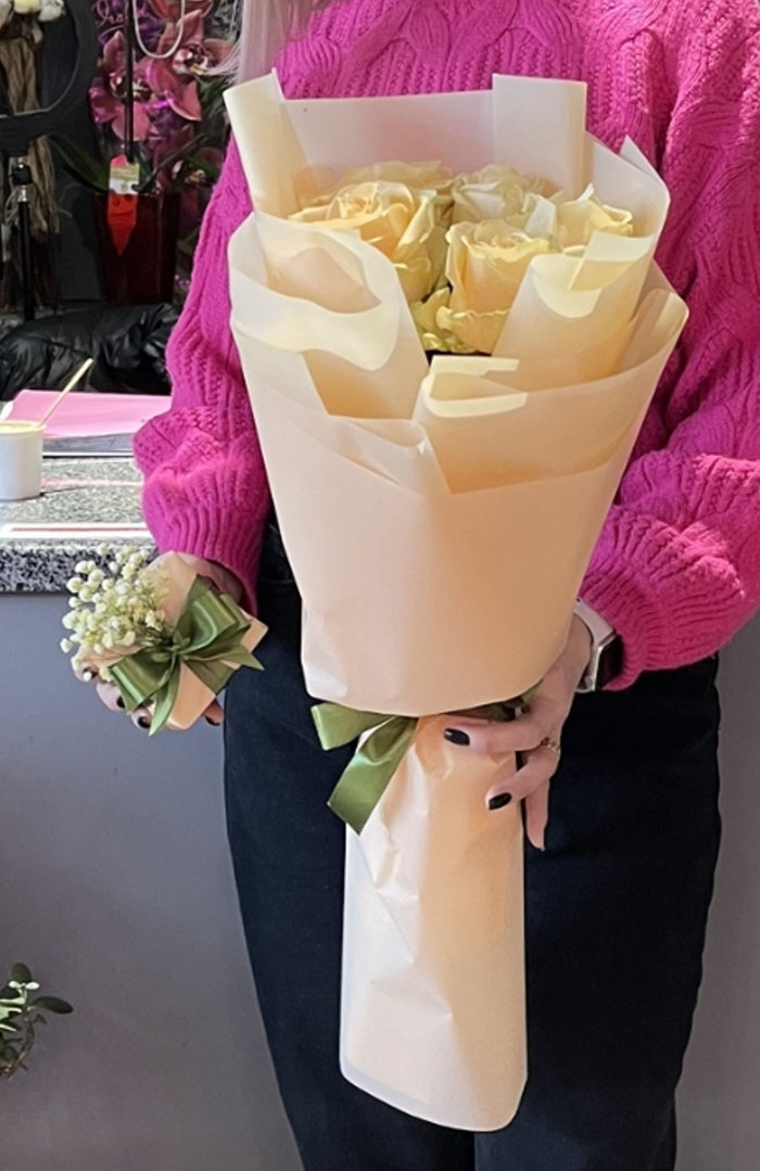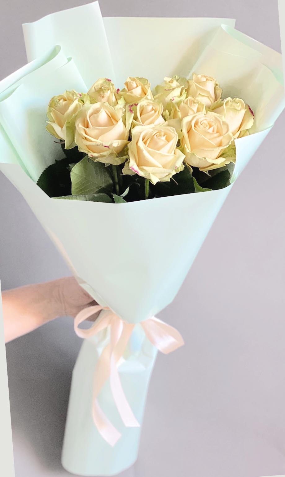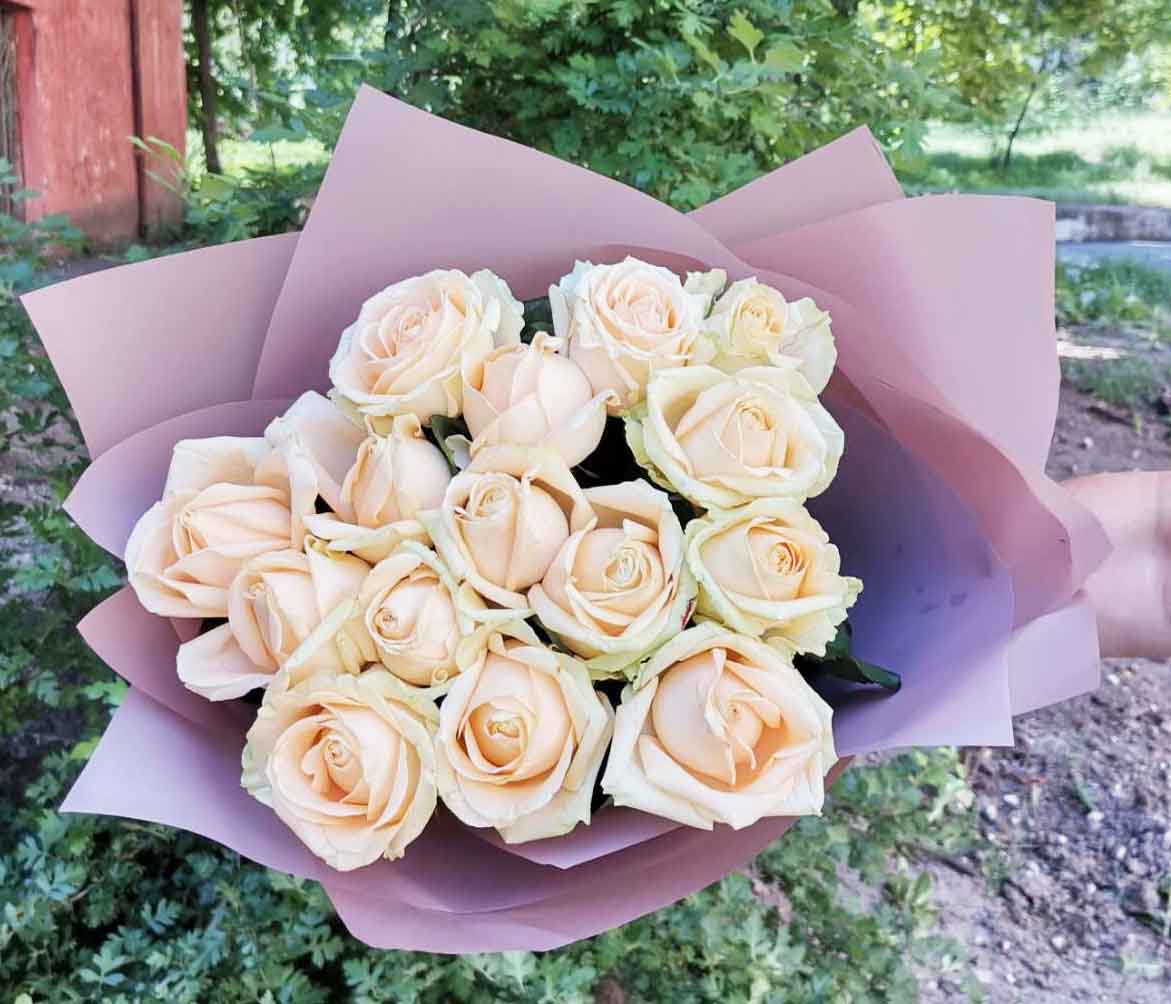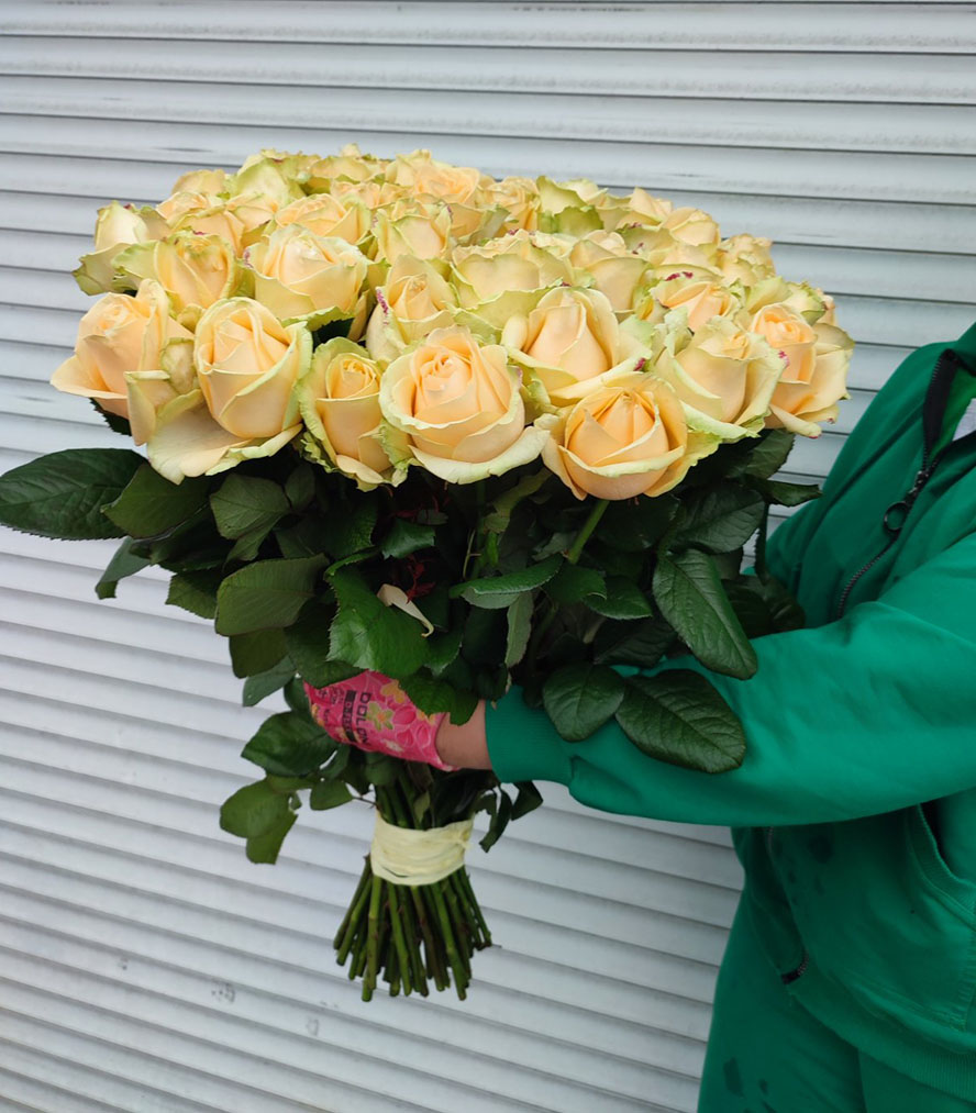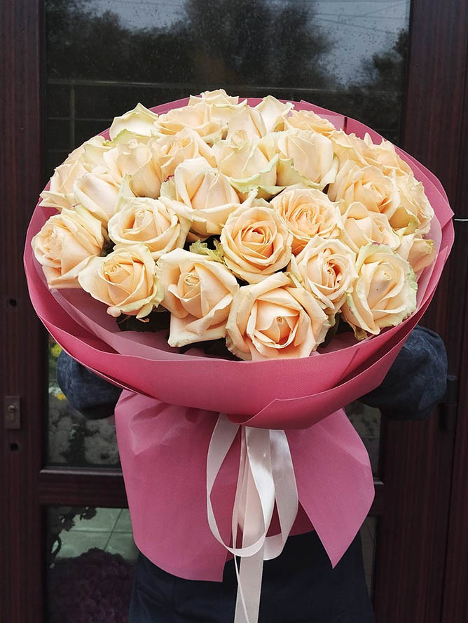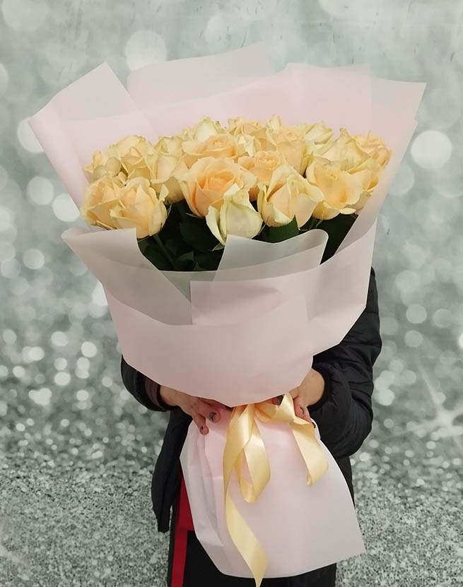 На этой странице можно заказать букет персиковых роз с высотой стебля 60-70 см