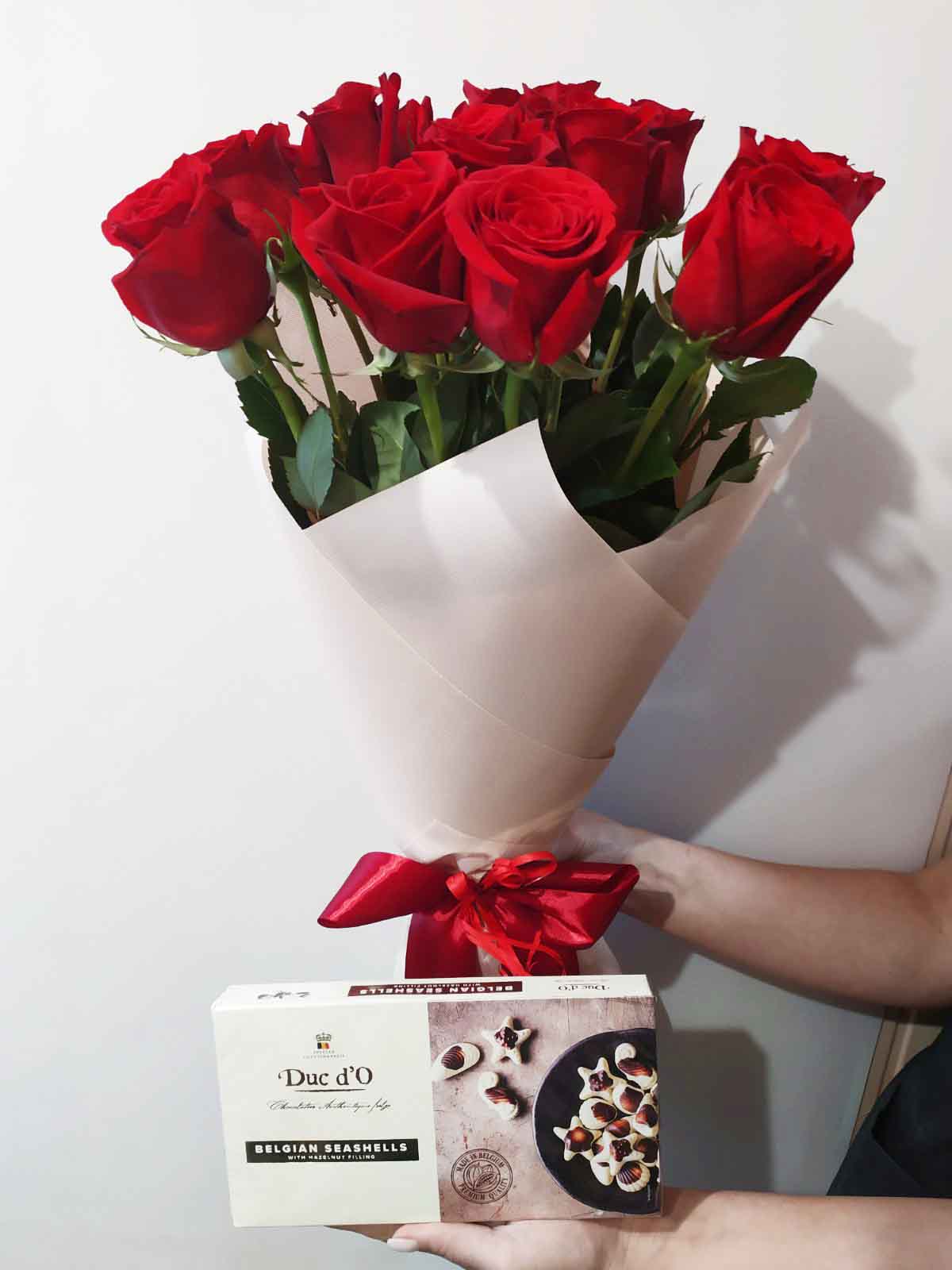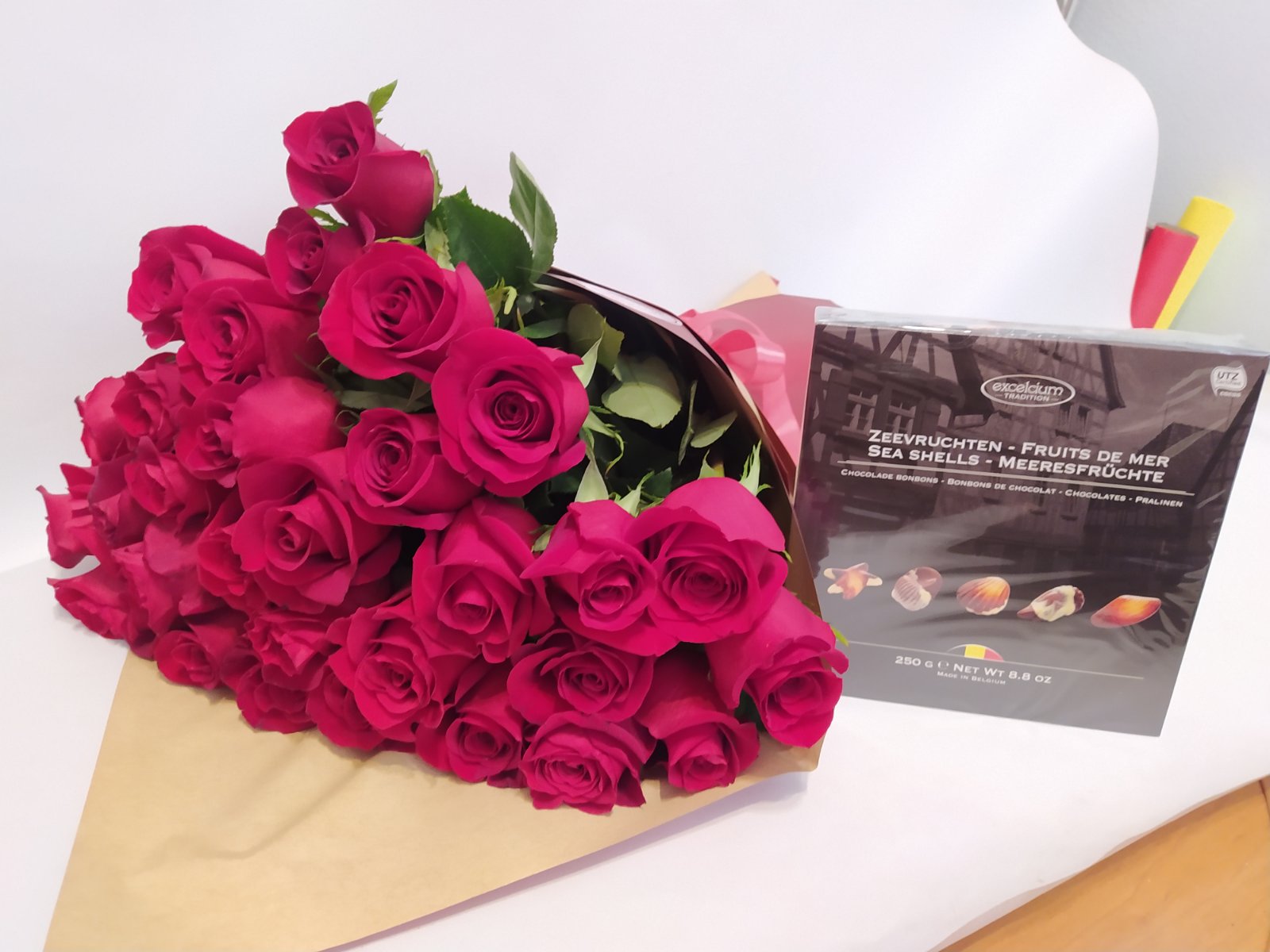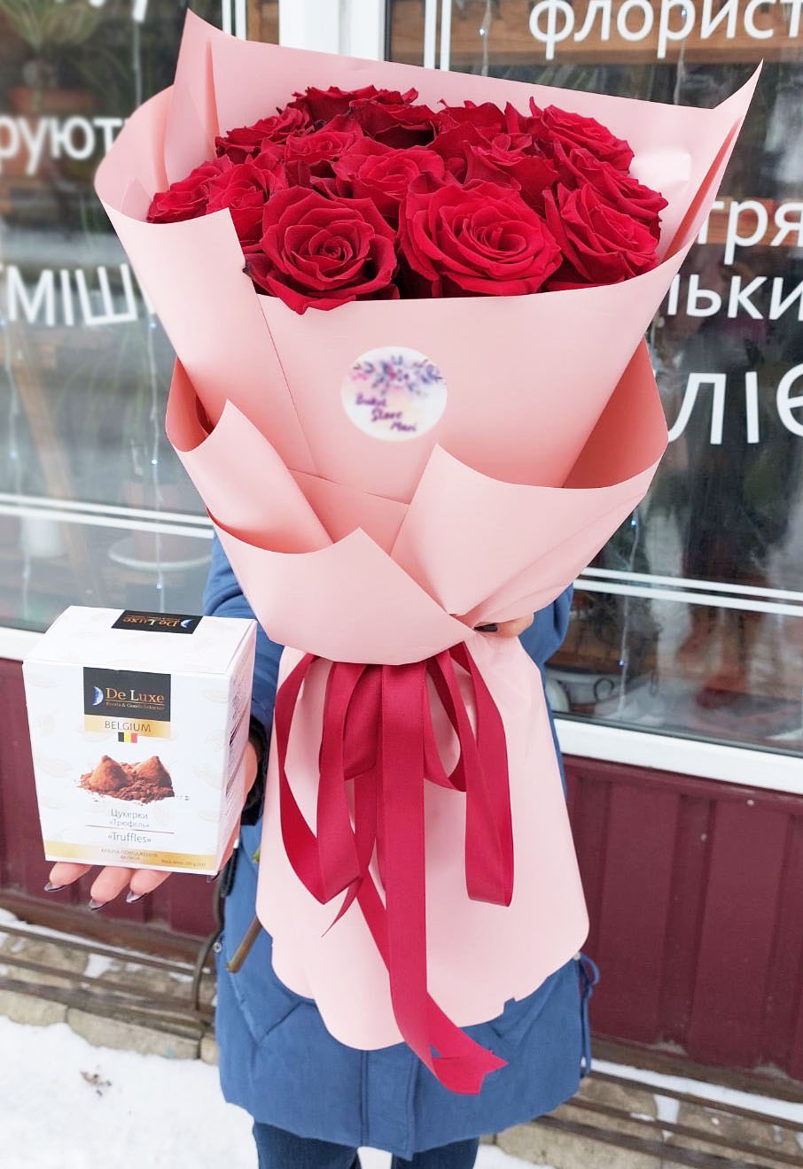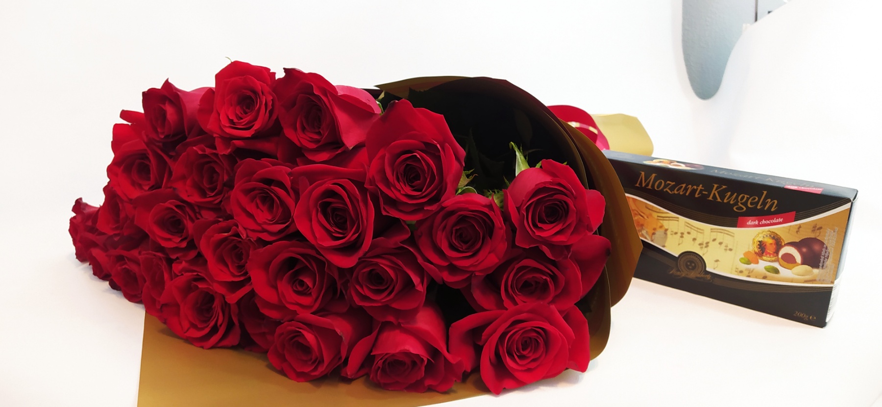 В этом наборе букет из Классических красных роз и коробочки отличного немецкого, бельгийского, французского или швейцарского шоколада. Какого именно - это зависит от населенного пункта, где проживает адресат. Но неизменно одно: конфеты будут от известного своим качеством европейского производителя.