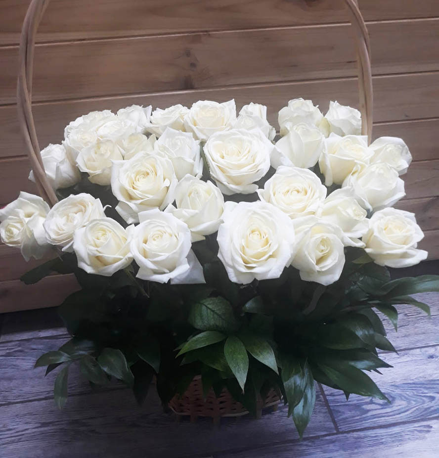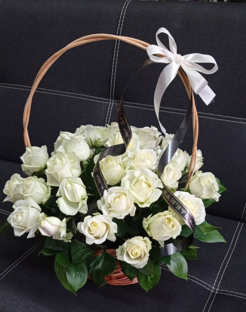 Белый цвет символизирует долгую память об ушедшем дорогом человеке. Эти розы уложены в оазис, который сохранит их свежими достаточно долго.