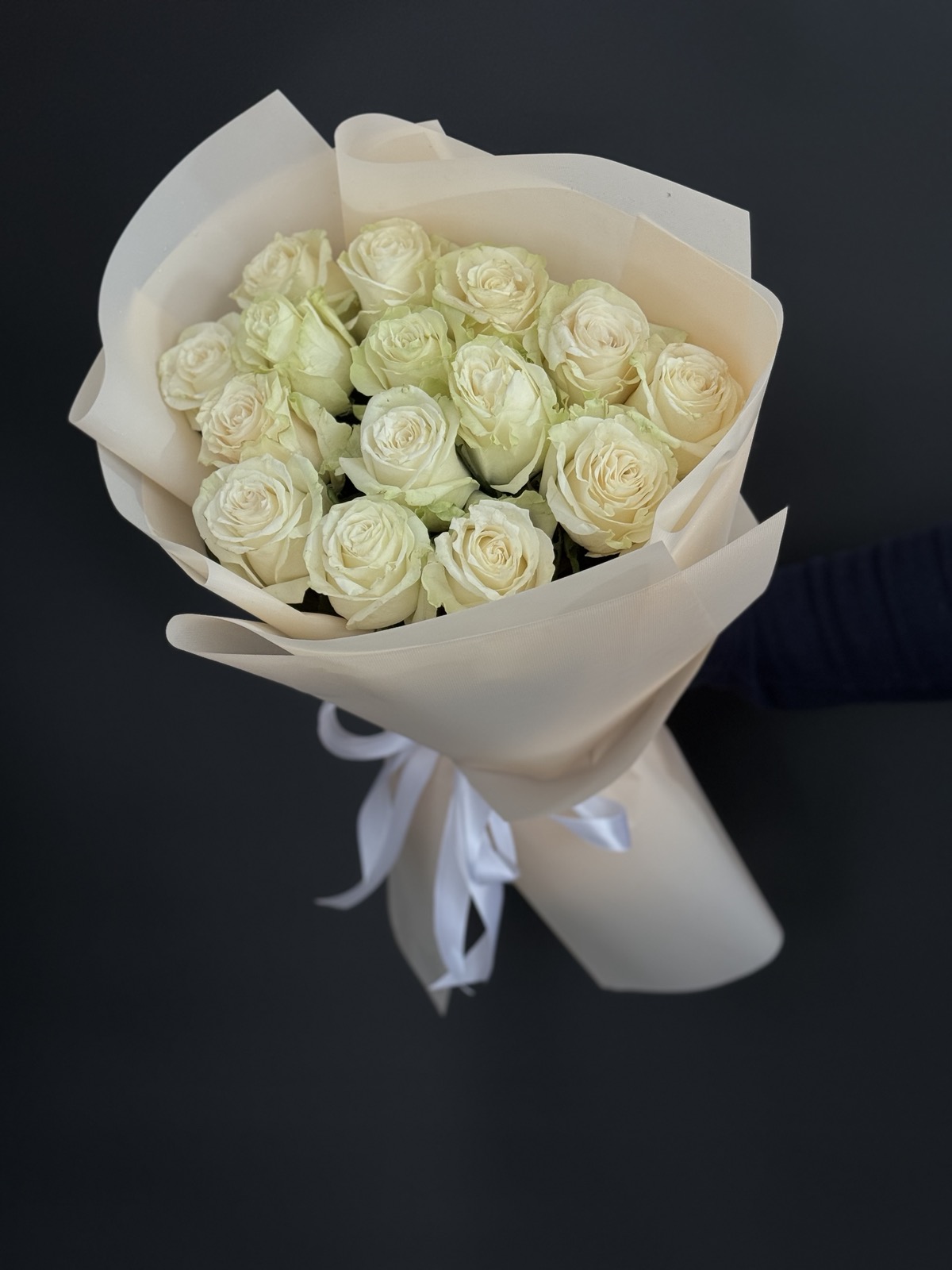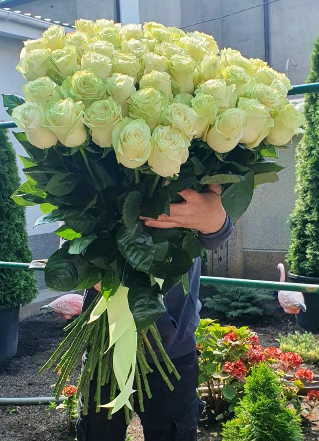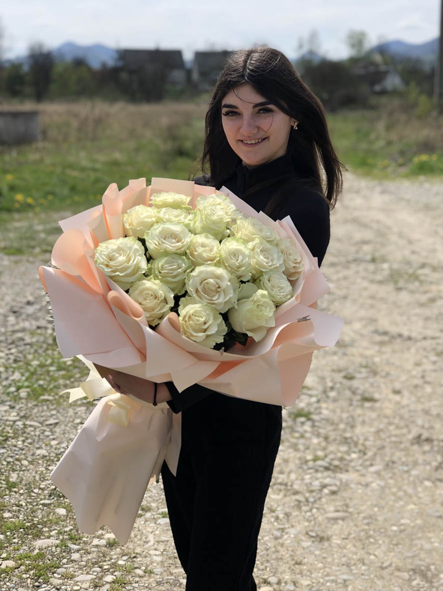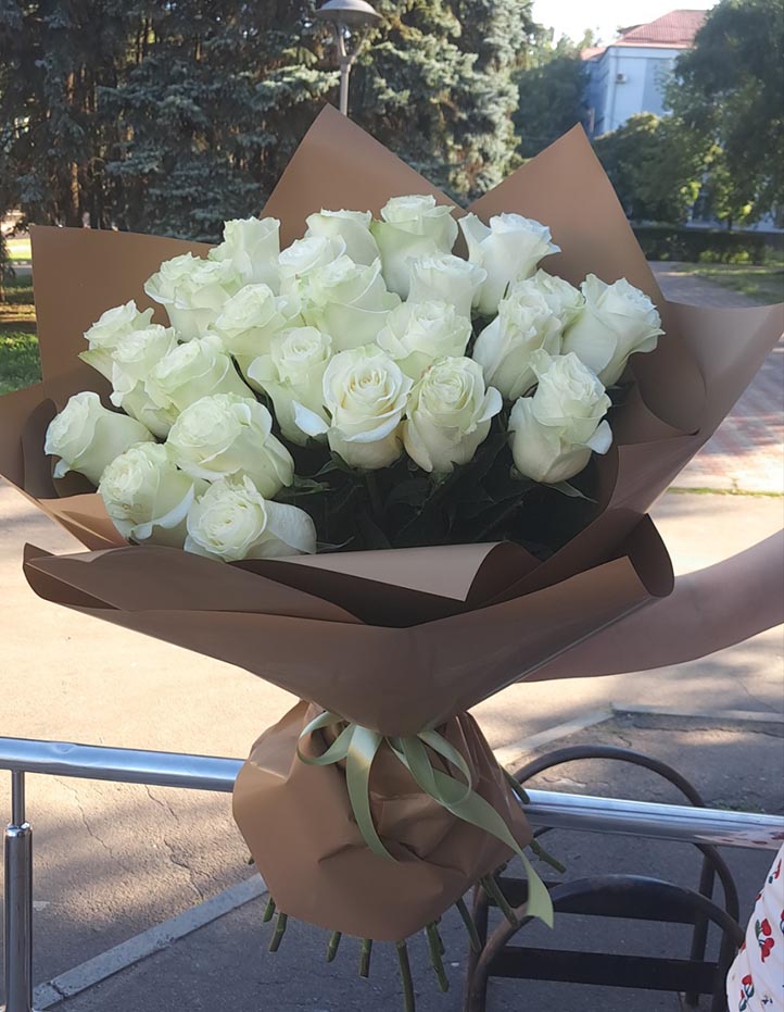 На этой странице можно заказать такой букет из белых роз с длиной стебля 80-90 см из Голландии или Эквадора.