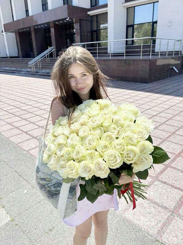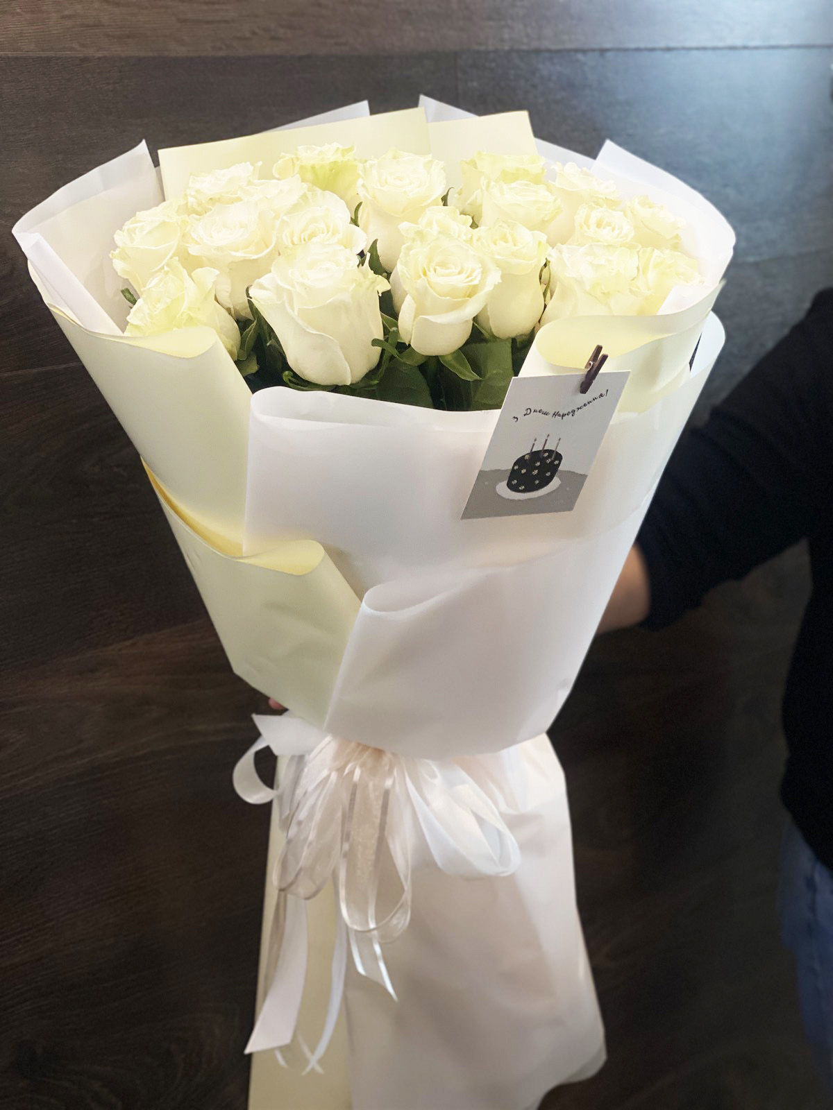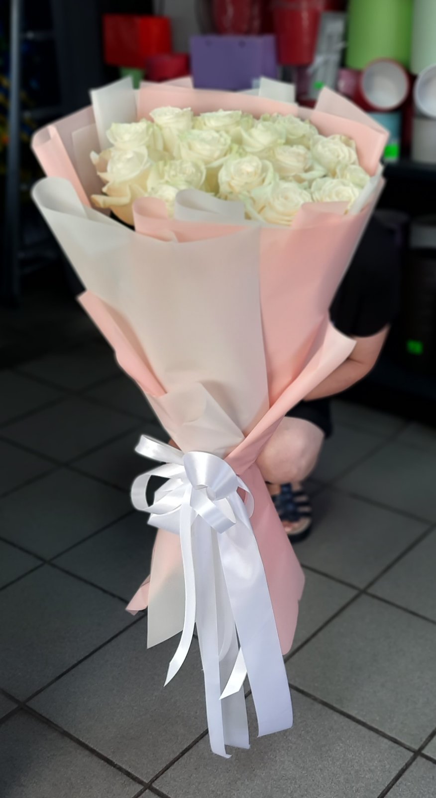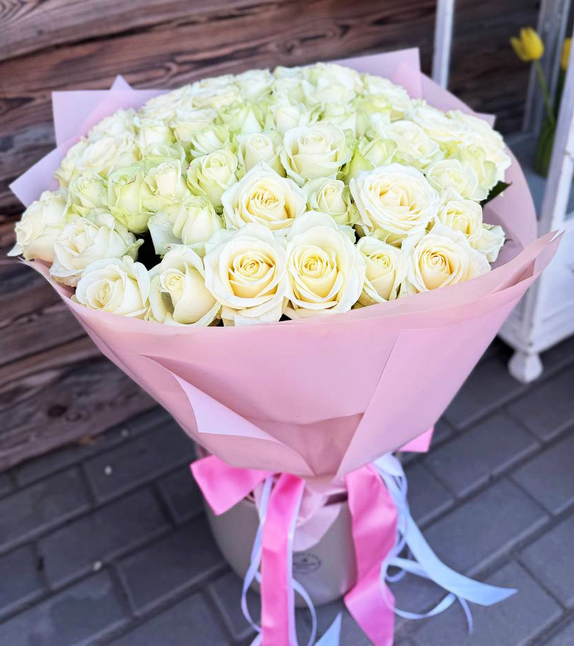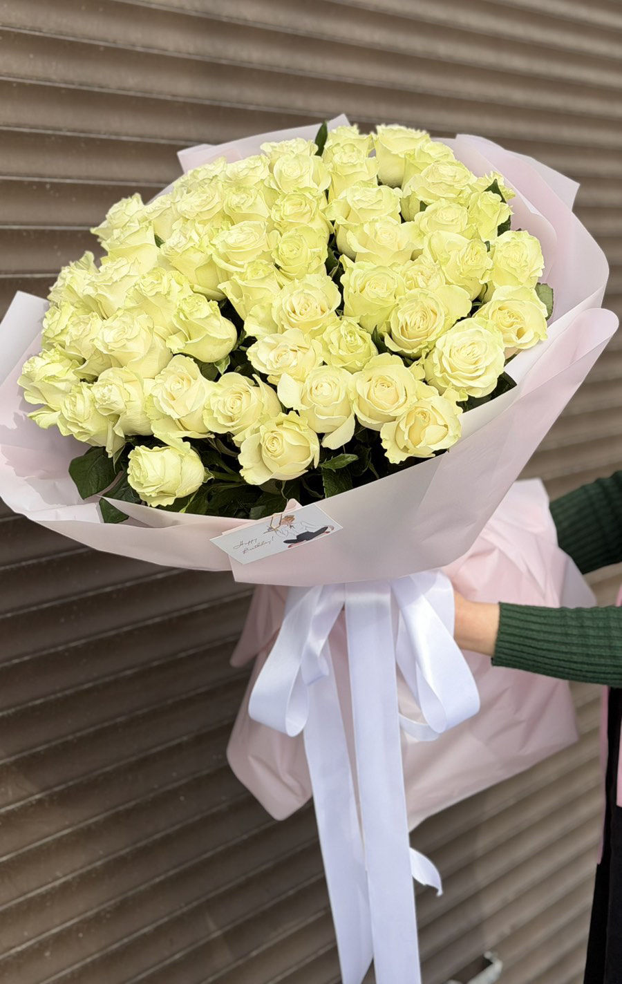 101 x Голландские Белые Розы Красивая упаковка Атласная лента