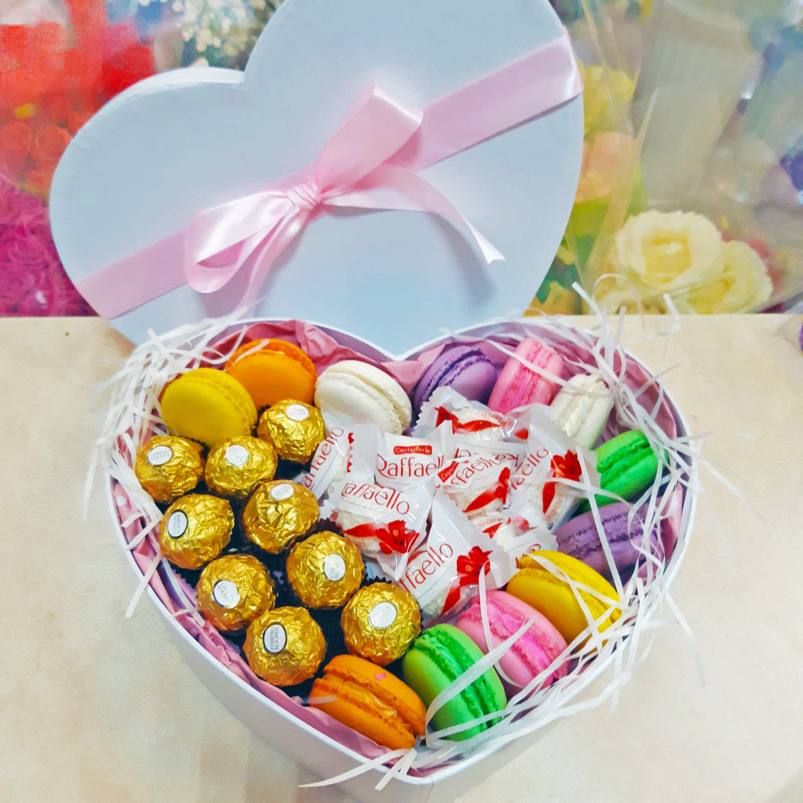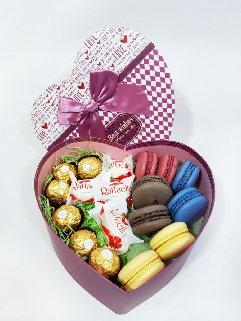 Поскольку в нашем цветочном агазине мы не продаем сладости, нам будет необходимо найти и купить их в местных магазинах, кондитерских, или пекарнях. На это необходимо время. Поэтому, пожалуйста, заказывайте этот товар не менее, чем за 1-2 дня до даты доставки. А лучше - еще раньше!