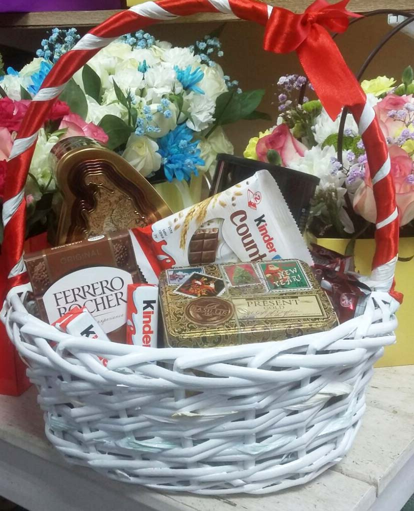 Набор будет доставлен в плетеной корзине или подарочной коробке и красиво украшен.
