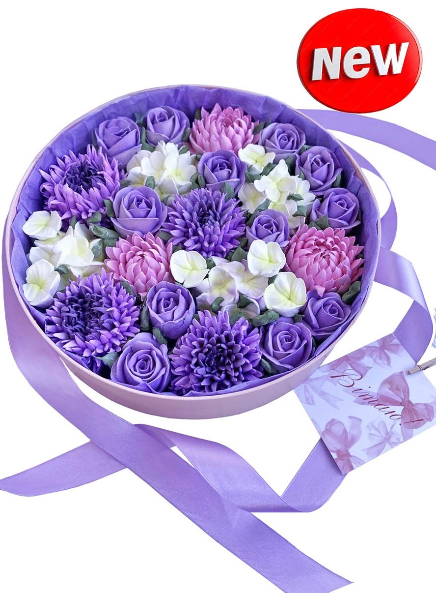 Unusual and probably the most unexpected gift box is a great idea for Birthday, any family holiday, Christmas, New Year, Easter and actually for any reason and even as a gift for no reason. The tones of these particular flowers is universal: the gift box would be appropriate for a kid - boy or girl, for a woman of any age and for a man.