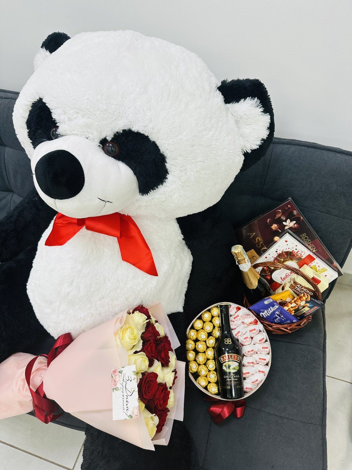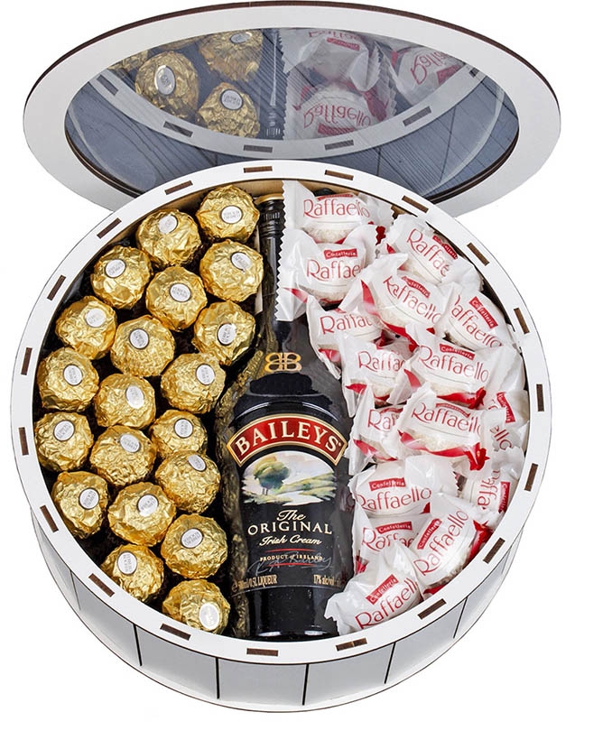This arrangement includes Baileys and chocolates of two actually most loved Italian brands: Ferrero Rocher and Raffaello.