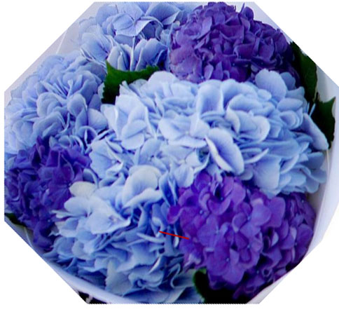 Саме тому ми й назвали цю композицію дещо невизначено... Колір гортензії цих відтінків може бути від світло-блакитного, до темного, практично синього, або ж до фіолетового. Наше додаткове фото трохи ілюструє спектр гортензій цих відтінків, хоча насправді їх значно більше.