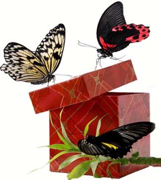 Побувати в тропіках, її виходячи за поріг власного будинку. Фантастика? Але її можна реалізувати принаймні для близької людини, пославши їй (йому) цей незвичайний сюрприз з різноколірних, яскравих, як тропічне сонце, метеликів.